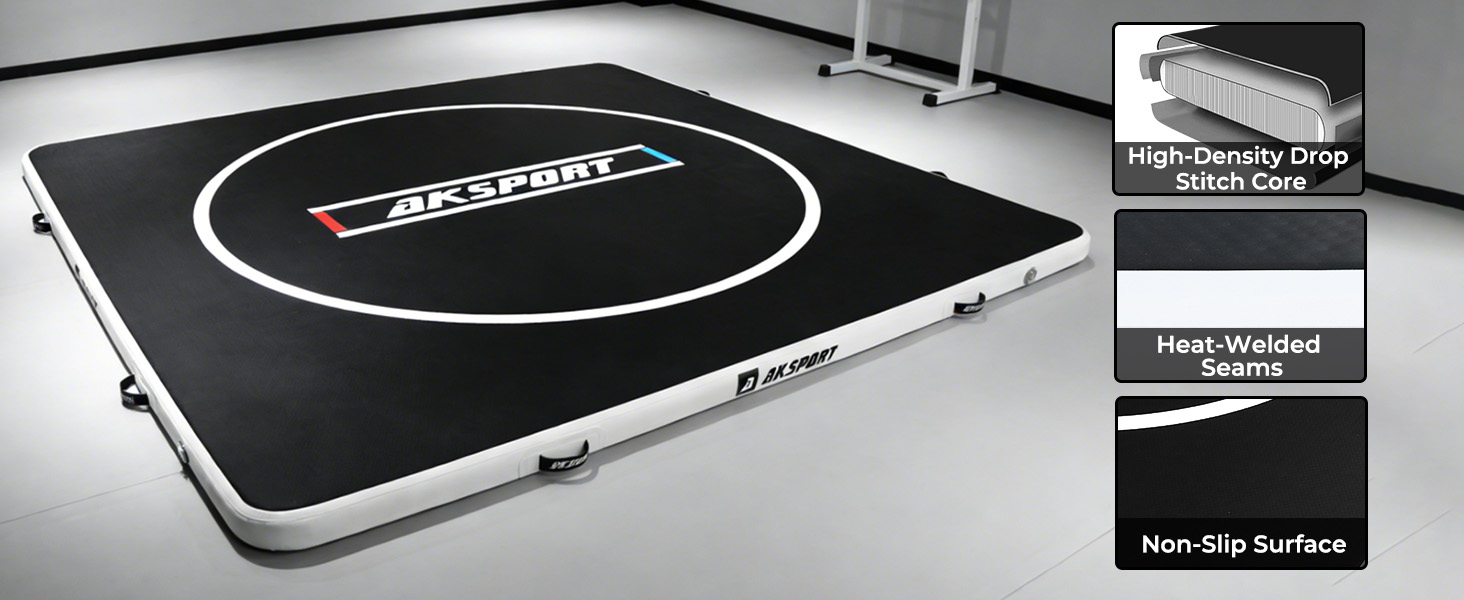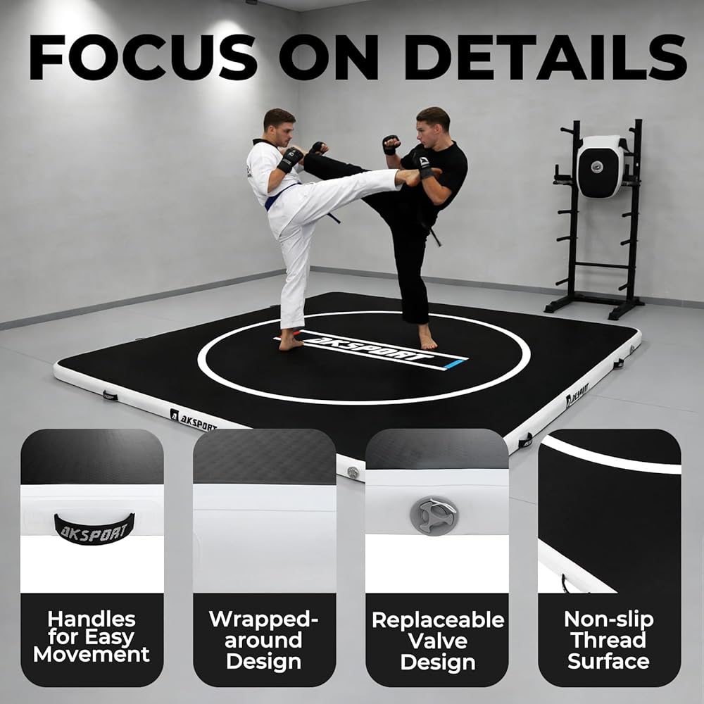 【مجموعة واسعة من الاستخدامات، تدرب في أي وقت وفي أي مكان】: بساط المصارعة القابل للنفخ هذا مناسب للمصارعة، وجيو جيتسو البرازيلية، والفنون القتالية المختلطة، والتصارع، والجودو، واللياقة العامة، والتمدد، والتدريب الرياضي. إذا كان التمرين يتطلب سطحًا ثابتًا ومبطنًا، فإن بساط المصارعة AKSPORT هو الخيار المثالي.
