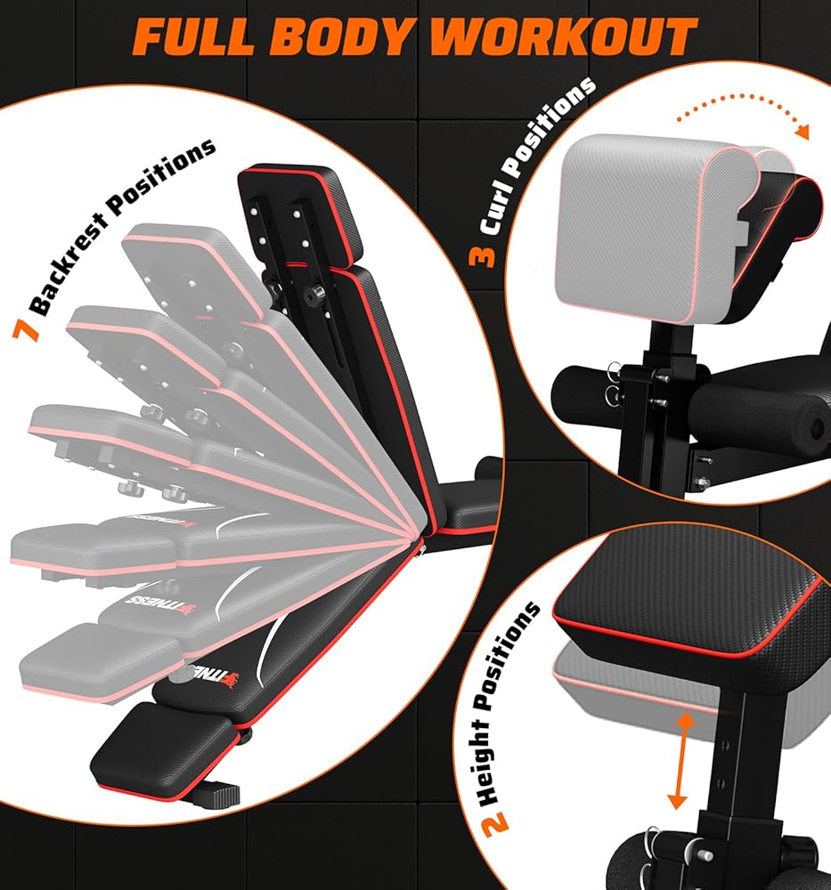 【مقعد وزن قابل للتعديل الكل في واحد】جرب تدريبًا كاملاً لكامل الجسم مع 7 زوايا لمسند الظهر، و3 إعدادات لتجعيد الواعظ، وخيارين لارتفاع الواعظ. يدعم مقعد الدمبل متعدد الاستخدامات هذا تمارين الميل والانخفاض، وضغط المقعد المسطح، وعزل الذراع المستهدف - كل ذلك من صالة الألعاب الرياضية المنزلية الخاصة بك. لا حاجة لتبديل المعدات: مقعد واحد يفعل كل شيء.