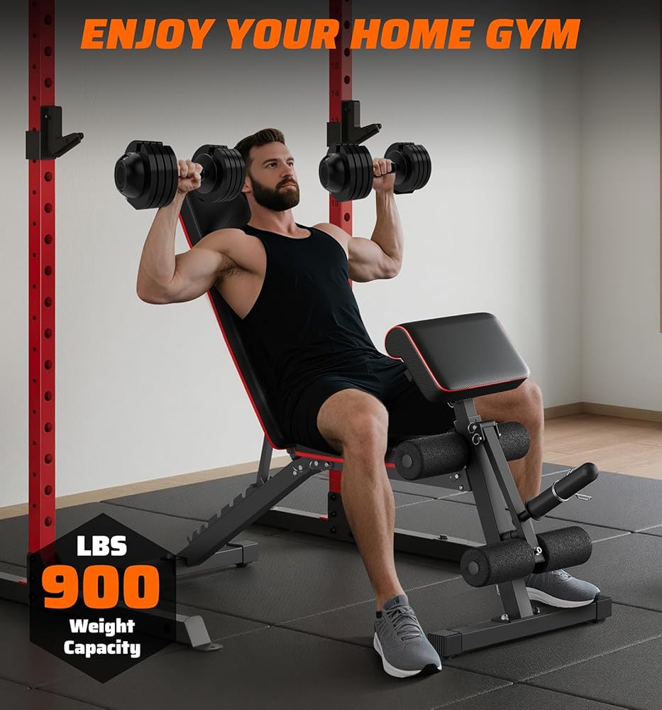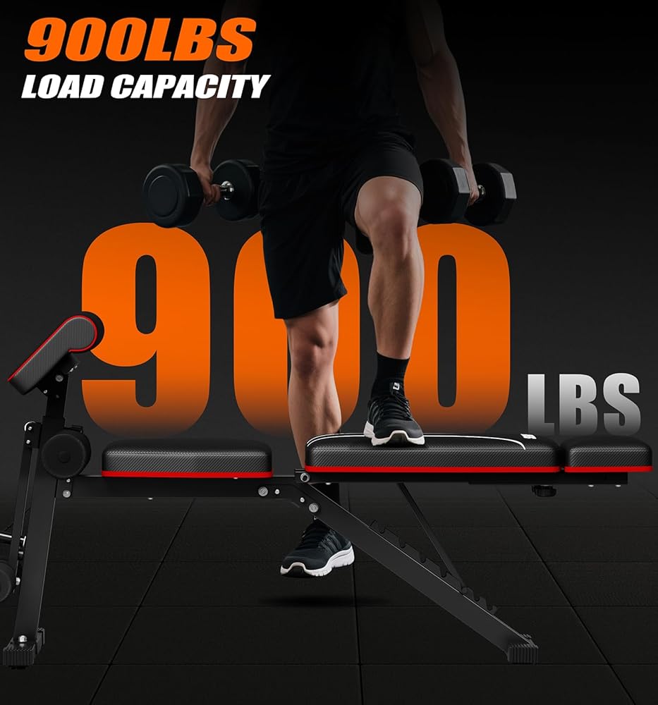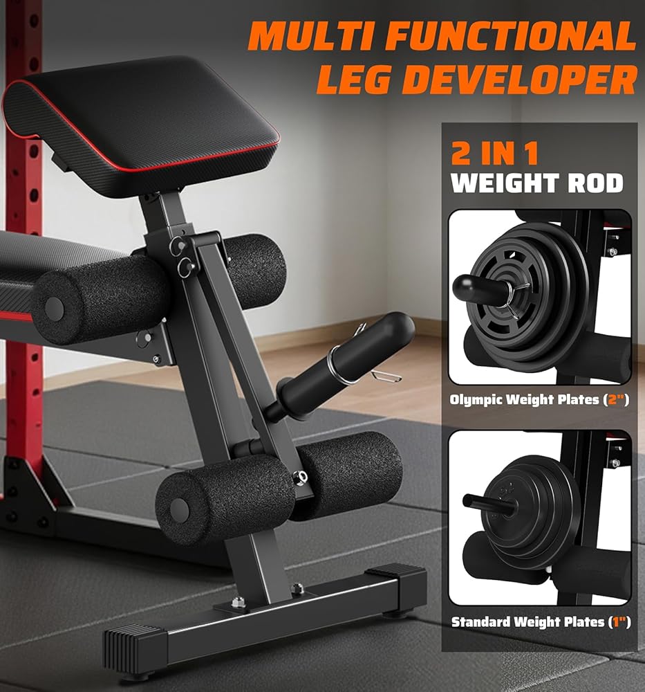مقعد رفع الأثقال قابل للتعديل ومقعد للتمرين وتمديد الساق لصالة الألعاب الرياضية المنزلية، جهاز ضغط مقعد قابل للطي لتمرين الجسم بالكامل مع مطور الساق ووسادة الواعظ، سعة 900 رطل وتصميم موفر للمساحة