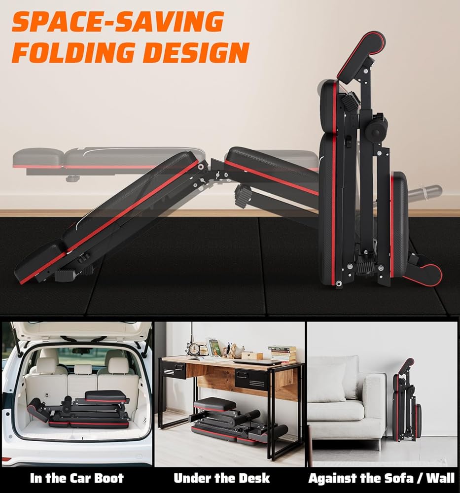 【تصميم قابل للطي - يوفر المساحة في المنازل الصغيرة】 هل تعاني من نقص في الغرفة؟ إن تصميمنا المبتكر للضغط على المقعد القابل للطي هو إجابتك. عند انتهاء جلستك، يمكن طي المقعد بشكل مسطح على الفور تقريبًا للتخزين العمودي المدمج. إنه مقعد التمرين المثالي والموفر للمساحة للشقق أو المرائب أو أي صالة ألعاب رياضية منزلية، مما يضمن أن رحلة اللياقة البدنية الخاصة بك ليست محدودة بالقدم المربع.