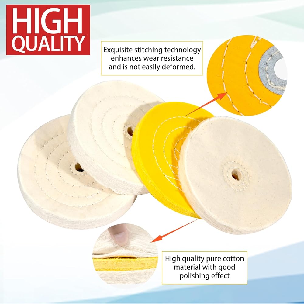 جودة عالية: مجموعة عجلات التلميع مصنوعة من مادة قطنية نقية عالية الجودة مع تأثير تلميع جيد. تقنية الخياطة الرائعة، تعزز مقاومة التآكل وليس بسهولة