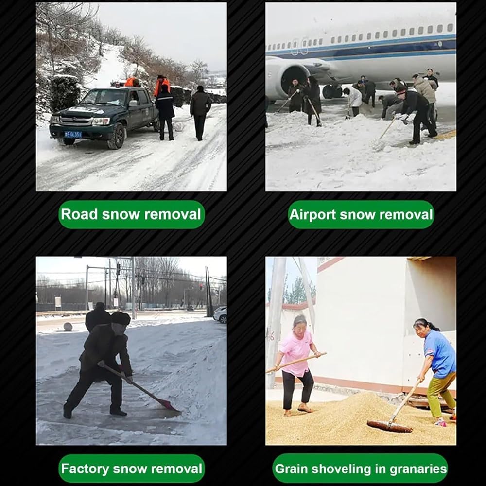 Multifunctional For All Surfaces:Protable Plow Snow Shovels for Drivewaynot only shovels snow and ice,but also doubles as a grain shovel, sand shovel, concrete shovel, and stone shovel, designed for maximum efficiency on driveways, sidewalks, patios, and walkways.