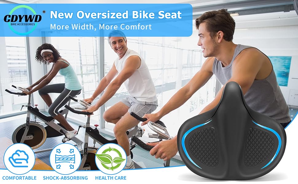 مقعد دراجة كبير الحجم للرجال والنساء مريح واسع، مقعد دراجة مبطن ناعم، سرج دراجة كبير مريح للبيلوتون، سكوتر كهربائي، دراجة تمارين ثابتة، دراجة الشاطئ، دراجة كهربائية، دراجة المدينة