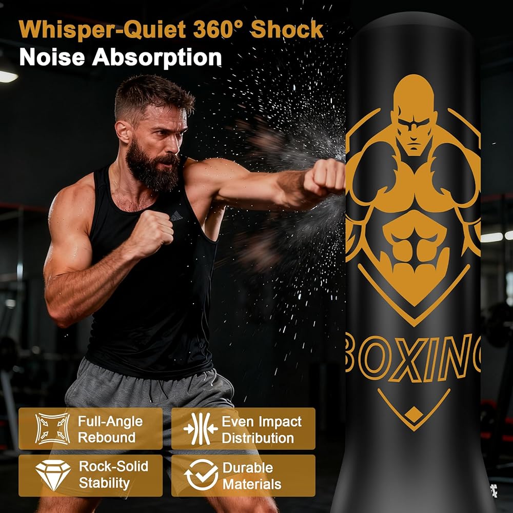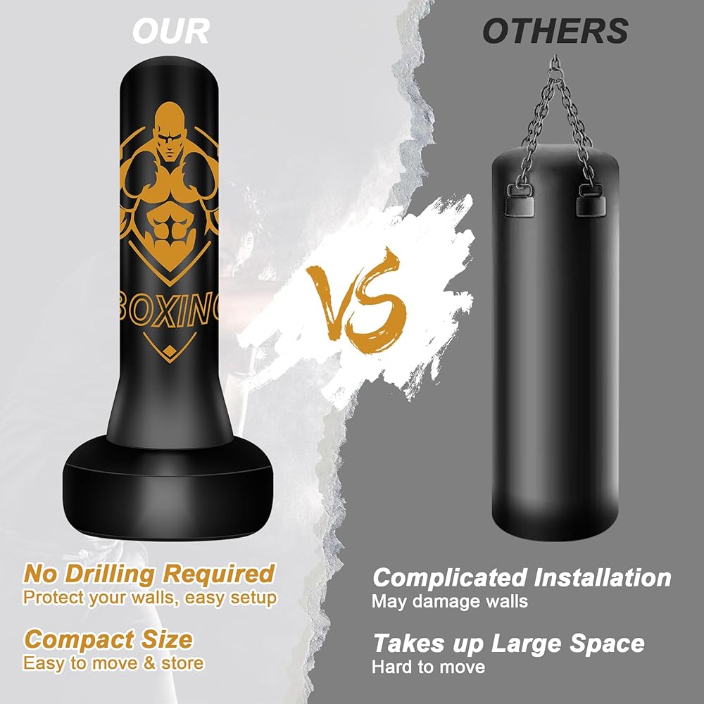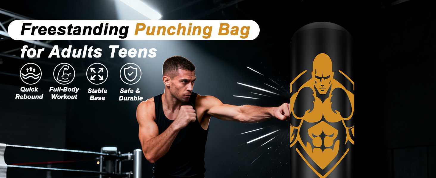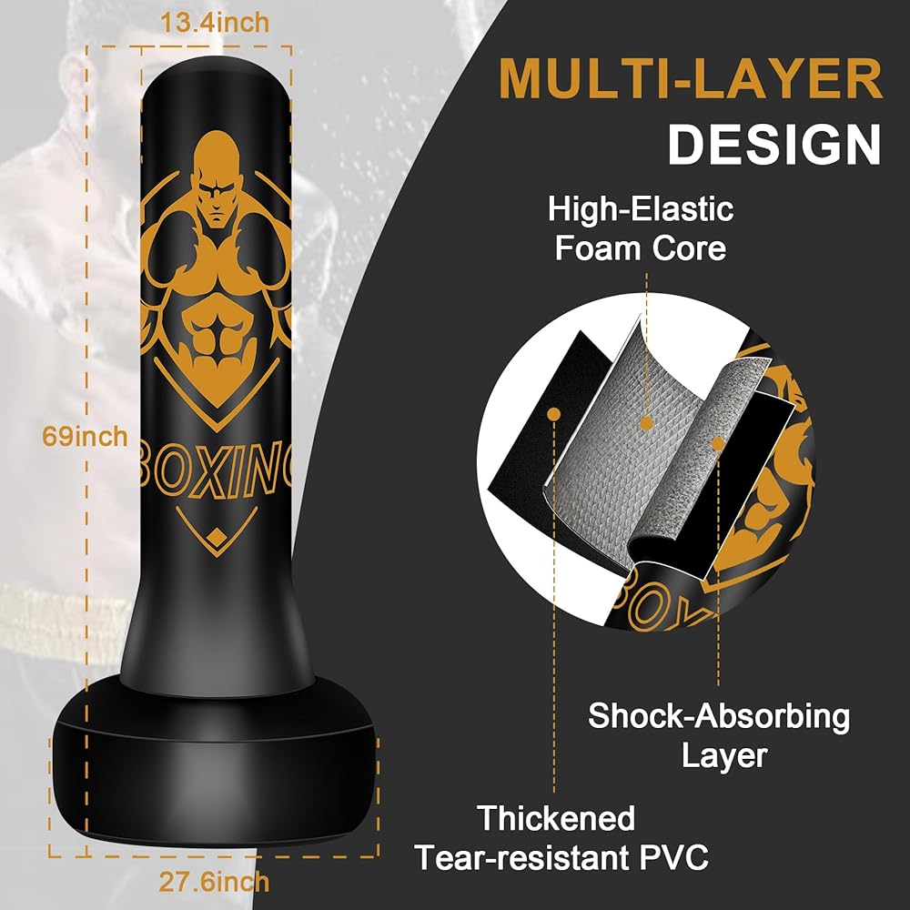 Punching Bag with Stand: This boxing bag is 70" tall, making it the perfect size for teens and adults at any fitness level. Made with thickened PVC, this punching bag for adults is highly durable, elastic, and designed to rebound quickly after punches and kicks. Whether for boxing, karate, or daily training, it delivers a professional experience at home