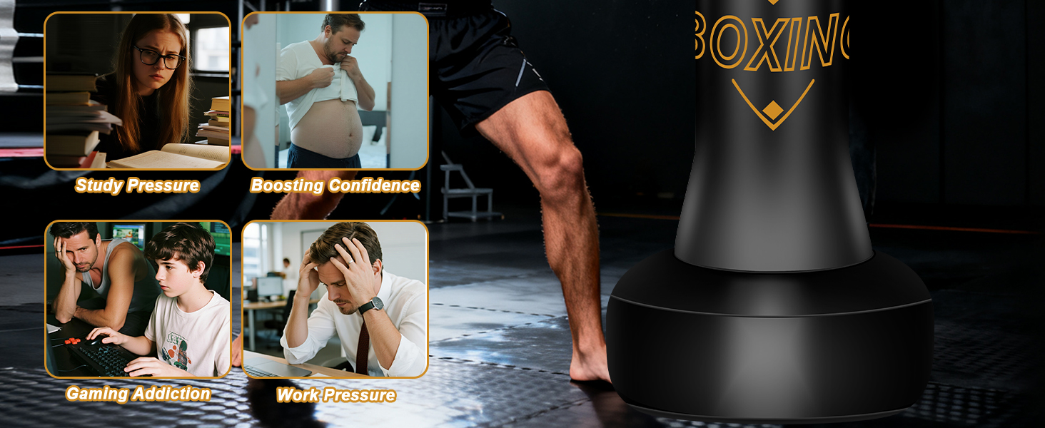 Fitness & Stress Relief in One: This standing boxing bag is perfect for beginners and athletes alike, combining fitness and stress relief in one. Use it to build strength, improve focus, and release tension during training. The punching bag stand comes in a premium gift box, making it an ideal present for teens and adults to stay active, confident, and energized at home (NOTE: This product does not include accessories such as an air pump)