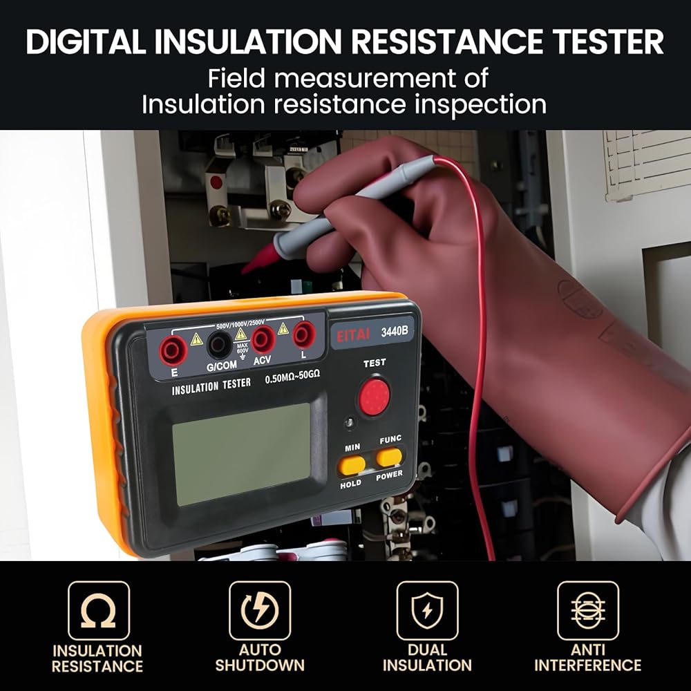 【نطاق واسع】يقيس جهاز اختبار مقاومة العزل EITAI3440B مقاومة العزل حتى 50 جيجا أوم، وهو مناسب لمختلف التطبيقات الكهربائية.