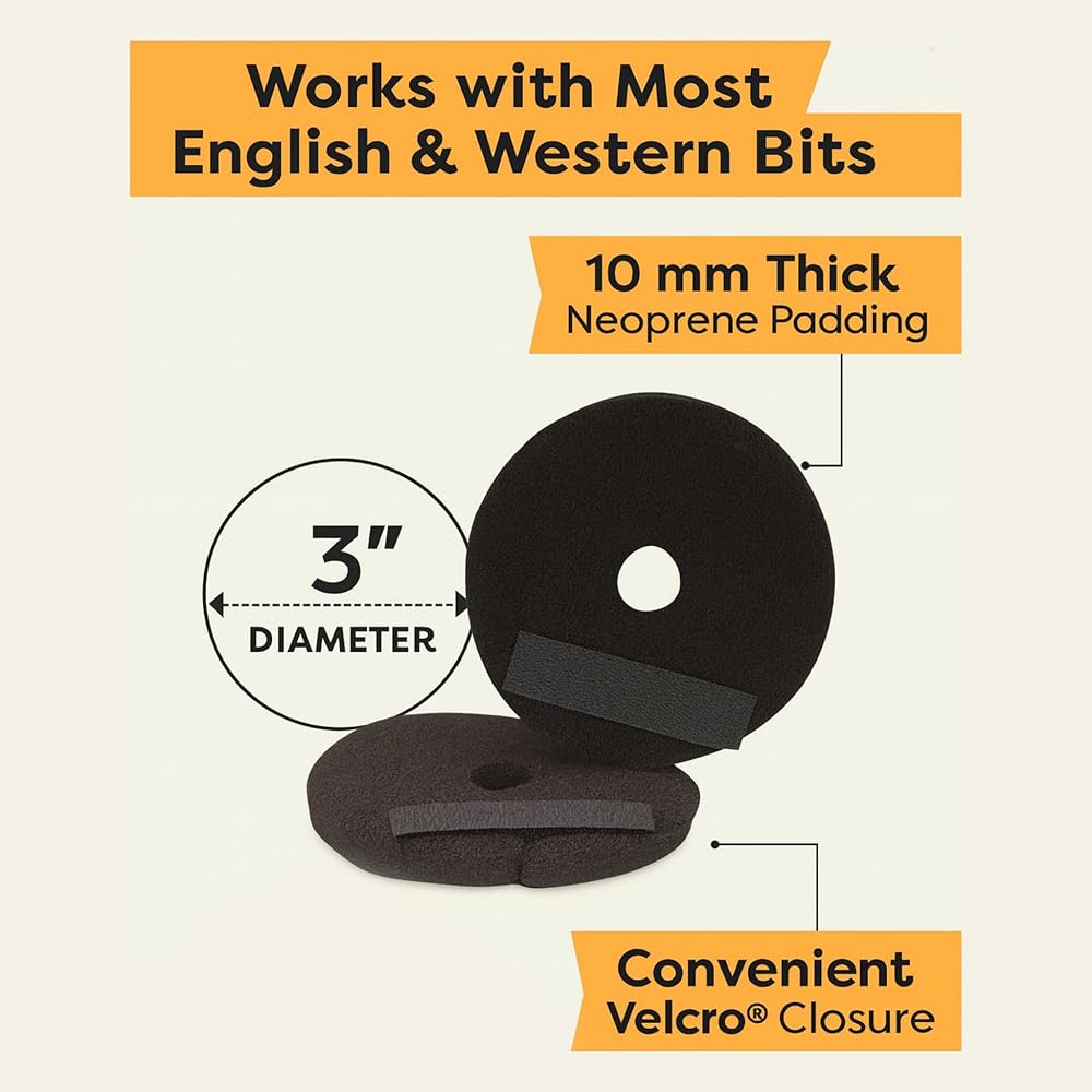 UNIVERSAL FIT – 3” diameter fits most English and Western bits. Stays secure during lessons, trail rides, or competitions without slipping or twisting.