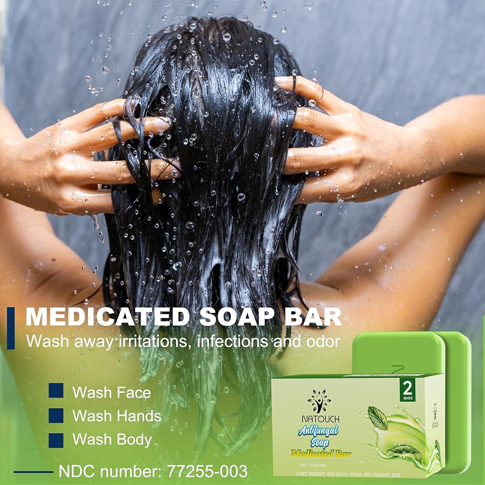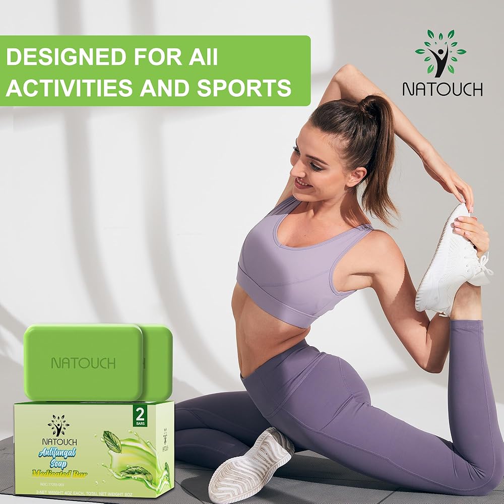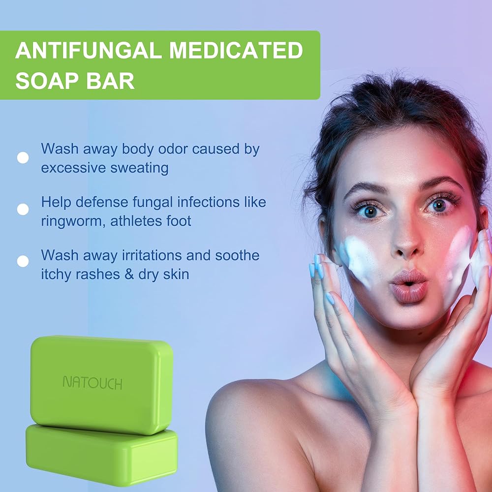 قالب صابون Natouch المضاد للفطريات: قالب صابون Natouch العلاجي المضاد للفطريات يهدئ وينظف أقدام الرياضيين، وأظافر أصابع القدم، والمبيضات، والقوباء الحلقية، وحكة اللعب، وحب الشباب، وغيرها من تهيج الجلد. إن صابوننا المضاد للفطريات ليس فقط يتمتع بالقدرة الفعلية على حمايتك أنت وعائلتك من الالتهابات الفطرية. يمكنك استخدامه في حياتك اليومية لوجهك وجسمك ويديك