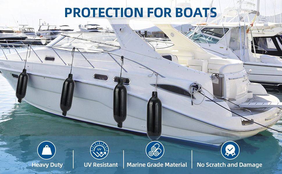 توافق عالمي مع نوع القارب: من خلال ضبط طول الحبل، يمكن ربط هذه المصدات بسهولة بقواعد الرصيف وقضبان الهيكل ونقاط التثبيت الأخرى. مصممة خصيصًا للسفن التي يتراوح طولها من 10 إلى 35 قدمًا، وهي تعمل بشكل مثالي كمصدات للقوارب العائمة وهي مثالية لتطبيقات قوارب جون وقوارب الباس وقوارب الصيد واليخوت - مصدات القوارب متعددة الاستخدامات حقًا لسيناريوهات الإرساء المختلفة.