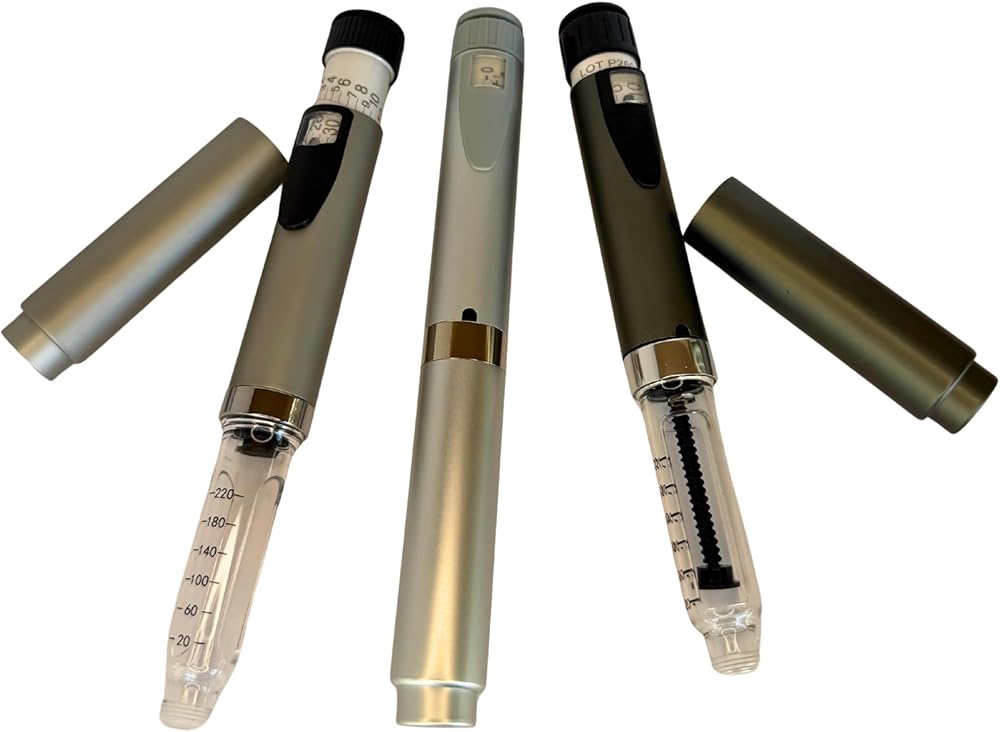 مجموعة أقلام الحقن القابلة لإعادة الاستخدام GXZ Health V2 - 3 أقلام مع 3 قوارير خرطوشة مجانية - فضي وتيتانيوم ورمادي معدني