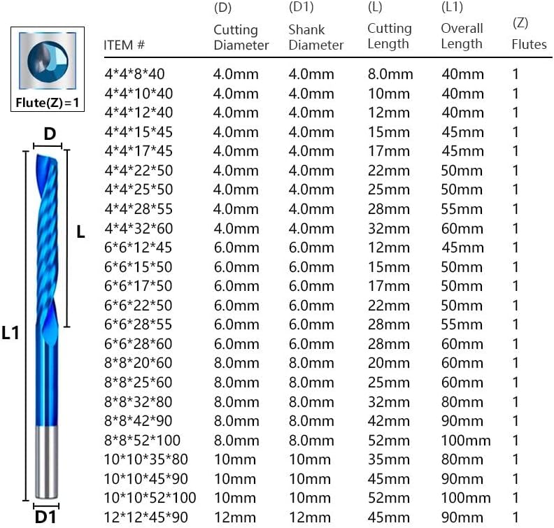 1 قطعة قطعة طحن فلوت واحدة بت كربيد التنجستن لولبية CNC راوتر بت 3.175 مللي متر-12 مللي متر مطحنة نهاية كربيد قاطع طحن فلوت واحد لقطع نحاس الألومنيوم
