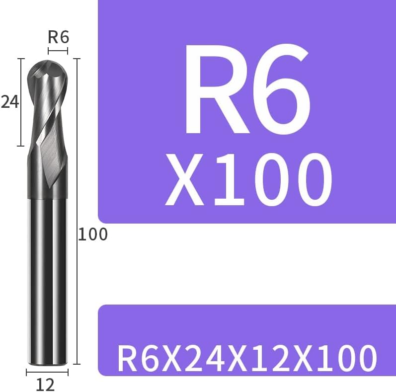 • Ball end cut 2-flute design spiral chip space design for fast and clean chip removal. Sharp cutting edge provides smooth cutting.