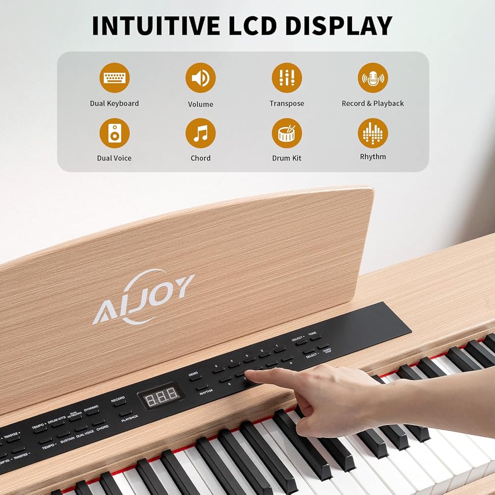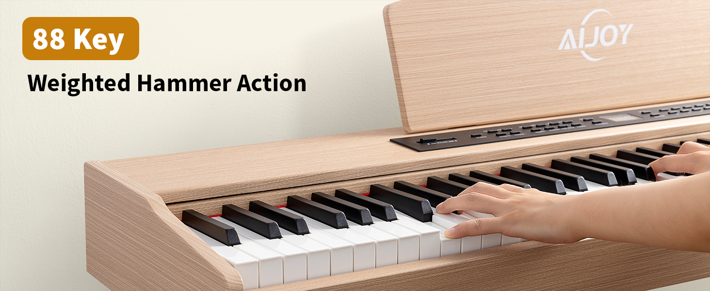 بيانو لوحة مفاتيح مرجحة بالكامل مكونة من 88 مفتاحًا - مع لوحة المفاتيح ذات المطرقة الموزونة المكونة من 88 مفتاحًا، يكون الشعور خفيف الوزن نسبيًا ويحاكي اللمسة المستجيبة للبيانو الكبير الحقيقي. إنها مناسبة للمبتدئين ومحبي الموسيقى، وتوفر ارتدادًا أسرع واستجابة أقوى للقوة.