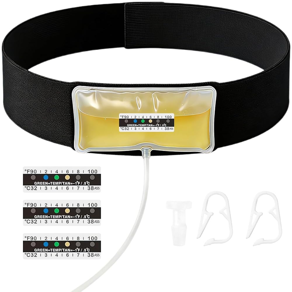Urine Test Complete Kit – Concealed 4 to 6 oz Sample Bag on Belt, Urine Test for Infirmary, Include Test Thermometer Stickers,Refillable Sample Bag on Hi-Stretch Hidden Sample Guard Belt (white M)