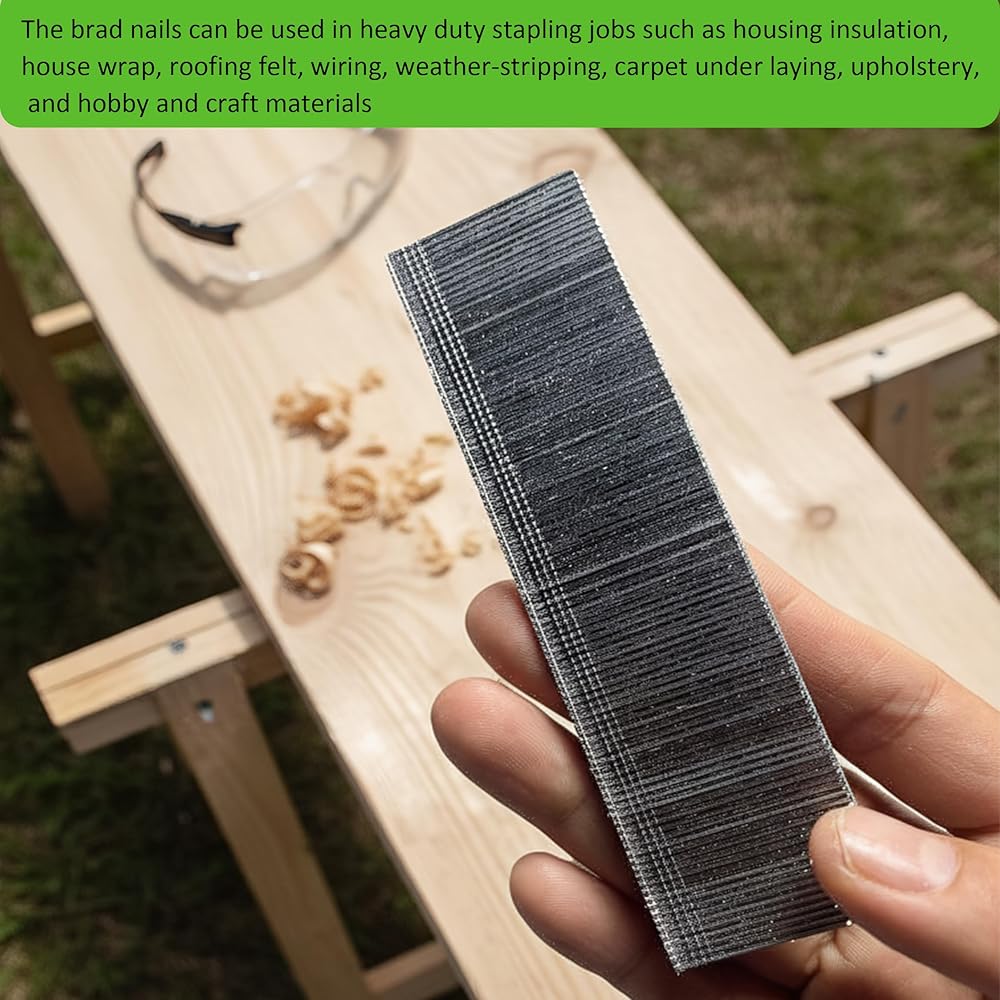 This comprehensive set of 1200 pieces of 18-gauge brad nails is designed to tackle a wide variety of fastening projects with precision and reliability. The collection includes two versatile sizes - 1-1/4 inch (32mm) and 2 inch (50mm) - with 600 nails of each length, conveniently organized in rows of 100 nails each across 12 rows total. These galvanized brad nails are built for heavy-duty stapling jobs including housing insulation, house wrap, roofing felt, wiring, weather-stripping, carpet underlaying, upholstery work, and various hobby and craft projects. The universal design ensures compatibility with many brands of pneumatic and electric brad nailers, making them an adaptable choice to meet your different fastening needs. Whether you're a professional contractor working on construction projects or a DIY enthusiast tackling home improvement tasks, these 18-gauge brad nails deliver the holding power and versatility required for quality results across multiple applications.