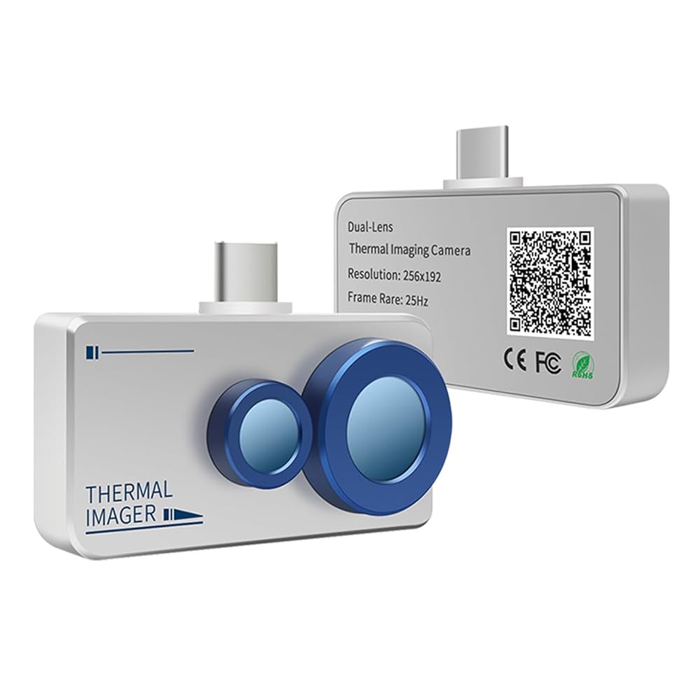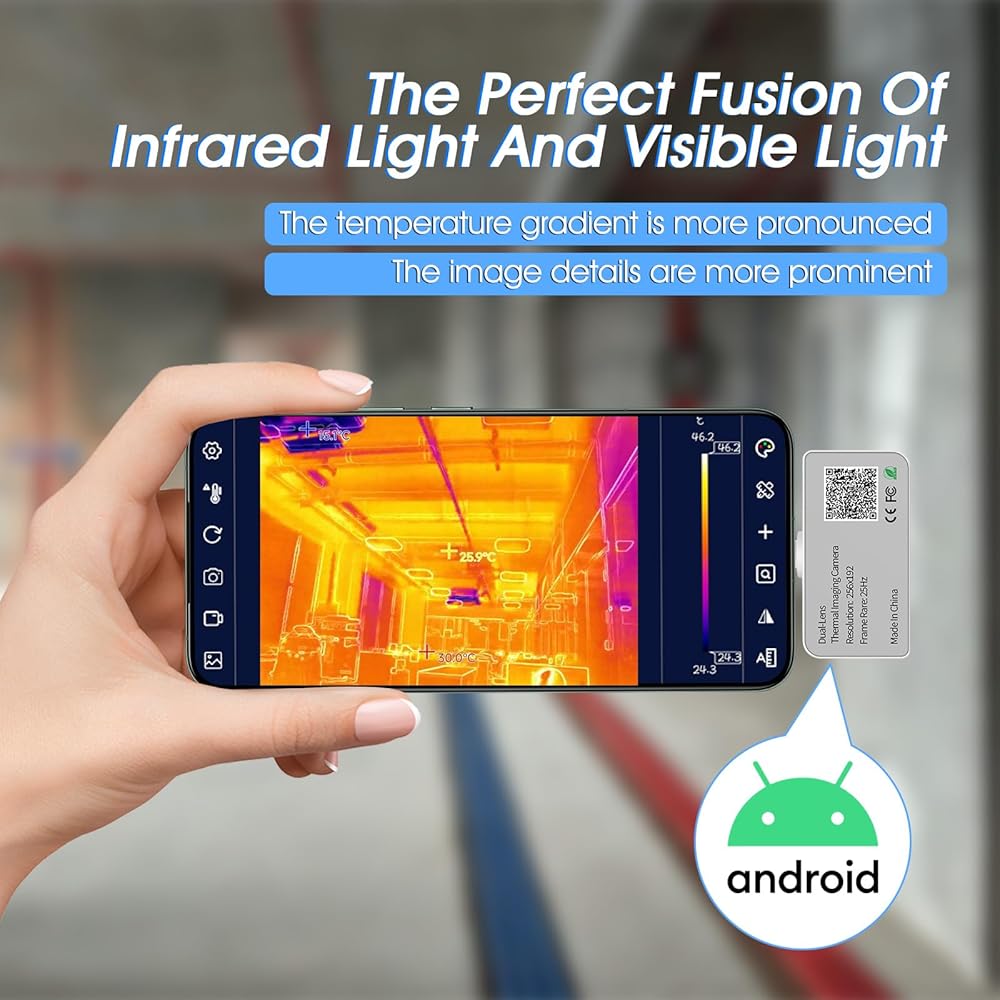كاميرا تصوير حراري Android، 256 * 192 IR & 640 * 480 كاميرا مزدوجة مرئية، نطاق واسع 5 درجة فهرنهايت ~ 1112 درجة فهرنهايت، منبه لدرجة الحرارة العالية/المنخفضة، مقاوم للماء، مع وضع الانصهار وكاميرا حرارية APP لنظام Android (وليس لنظام iOS)