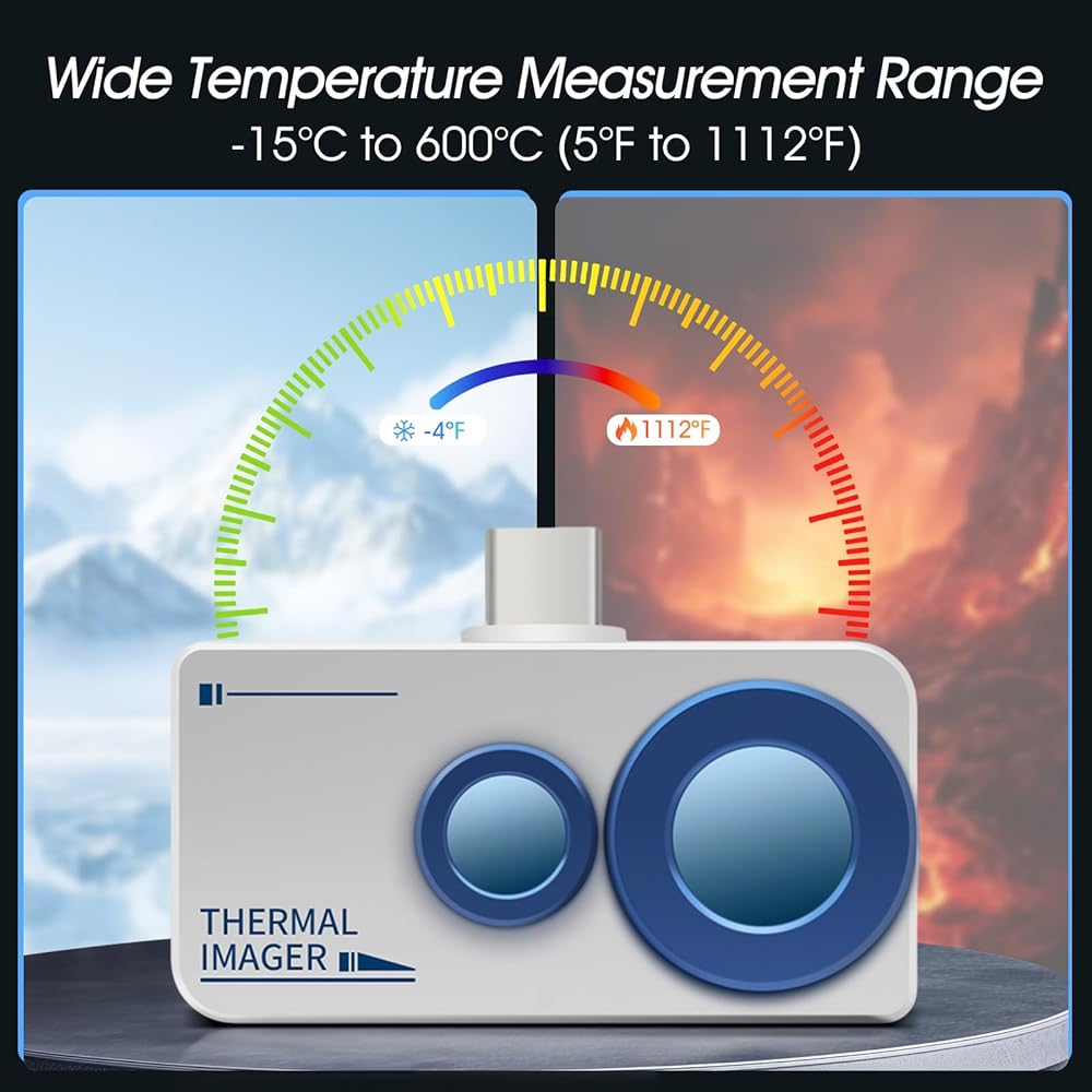 【تطبيقات متعددة الاستخدامات للمحترفين】من الكشف عن الأعطال الكهربائية، وتسربات التدفئة والتهوية وتكييف الهواء (HVAC)، ومشكلات عزل الأنابيب إلى تشخيص السيارات وفحص المباني، تعد هذه الكاميرا الحرارية أداة يجب اقتناؤها. إن نطاق درجات الحرارة الواسع والتصوير عالي الدقة يجعله مثاليًا للصيانة الصناعية والسلامة من الحرائق وتدقيق الطاقة. جهاز تصوير حراري موثوق به بحجم الجيب لحل المشكلات أثناء التنقل!