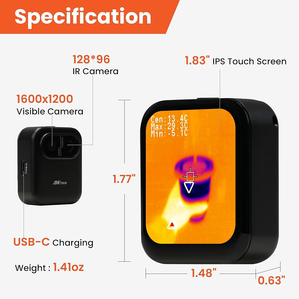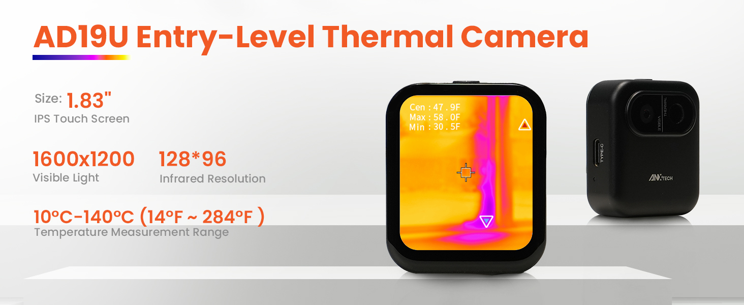 مناسب للمبتدئين: لا توجد تطبيقات أو إعداد معقد، ما عليك سوى التشغيل والبدء في الاكتشاف على الفور. تعرض شاشة اللمس IPS مقاس 1.83 بوصة بوضوح قراءات درجة الحرارة بدرجة مئوية أو درجة فهرنهايت، مما يساعدك على فهم الاختلافات الحرارية بسرعة وإكمال عمليات الفحص بشكل أسرع