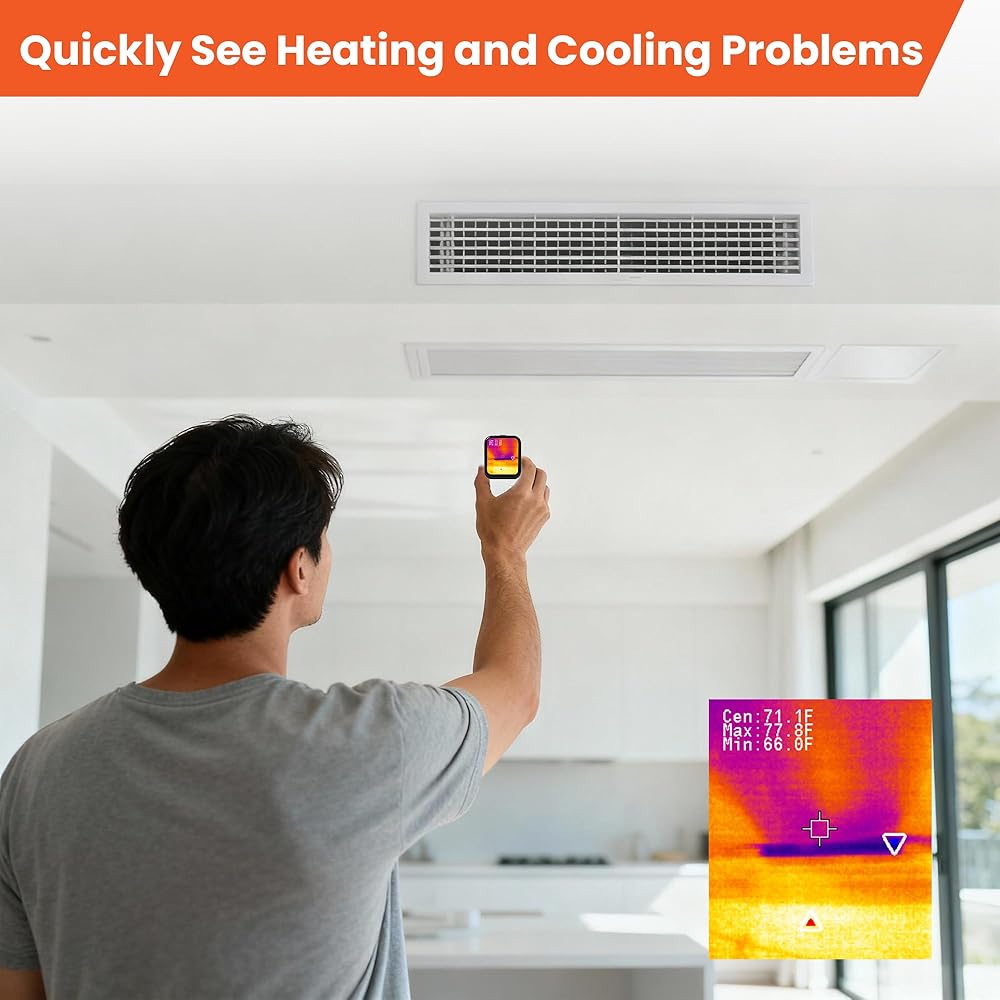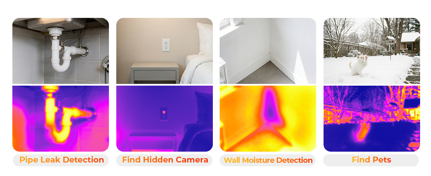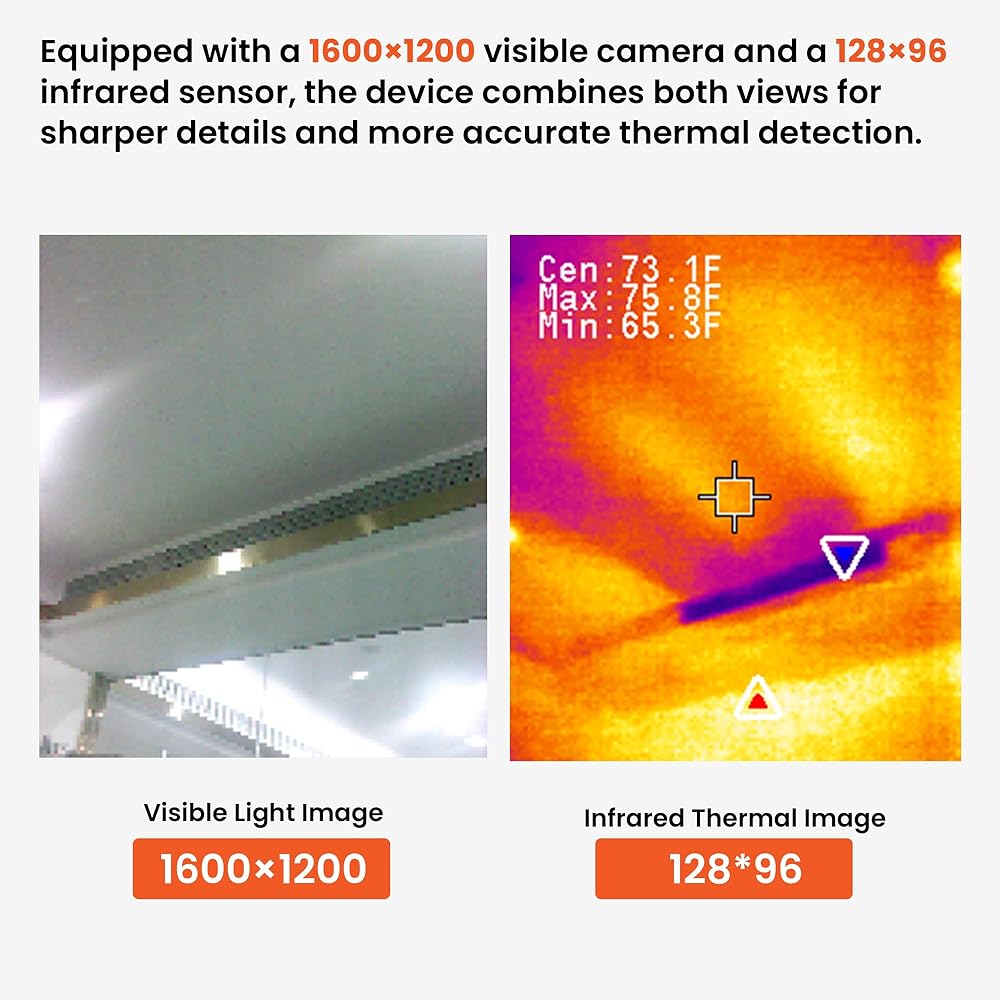 دقة موثوقة تبلغ 128 × 96 بالأشعة تحت الحمراء: هذه الكاميرا الحرارية مثالية لمعظم عمليات التفتيش المنزلية اليومية، ويمكنها العثور بسرعة على الرطوبة خلف الجدران التي قد تؤدي إلى العفن، وتحديد الحرارة الخارجة من خلال عزل السقف التالف، والتحقق من التدفئة والتهوية وتكييف الهواء (HVAC) بحثًا عن تدفق هواء غير متساوٍ - مما يساعدك على اكتشاف المشكلات مبكرًا والحفاظ على منزلك مريحًا وفعالًا