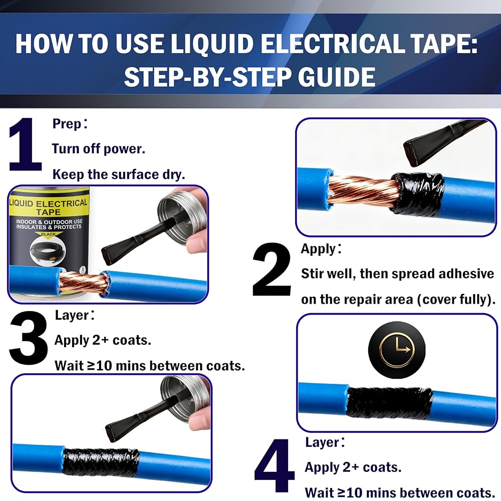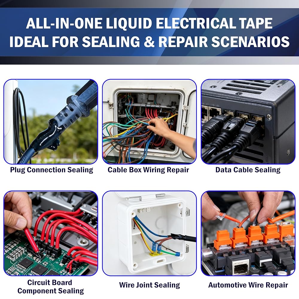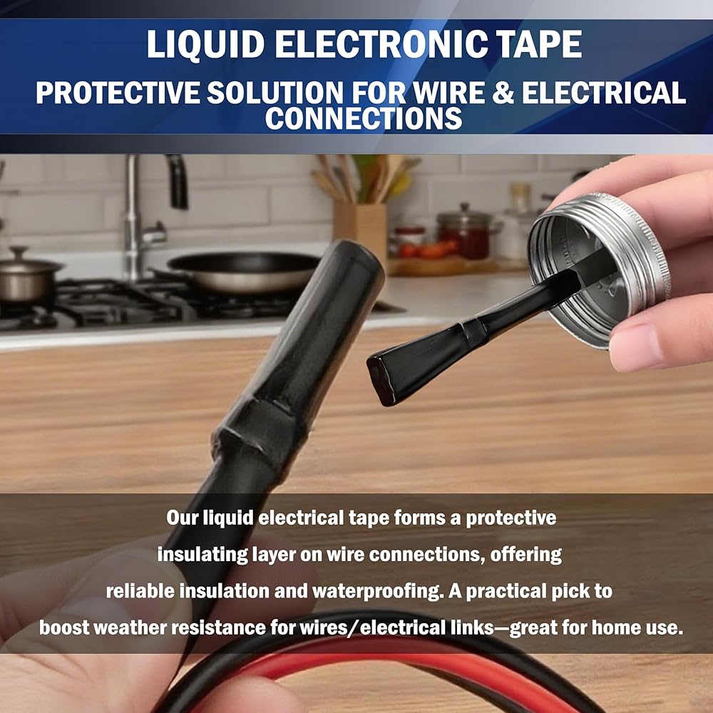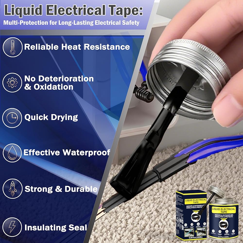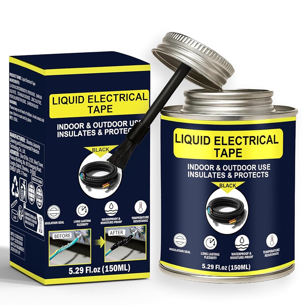 The 150ml Black Liquid Electrical Tape is a professional-grade insulating solution designed to protect and seal electrical connections with ease. Unlike traditional electrical tape, this liquid wire insulation rubber provides a seamless, waterproof, and flexible coating that resists cracking and peeling. Featuring a quick-drying formula, it allows fast repairs on wires, cables, and electronic components, saving time while ensuring strong adhesion. With excellent waterproofing performance, it prevents corrosion caused by moisture, making it ideal for both indoor and outdoor use, including marine, automotive, and household applications. Built to endure extreme conditions, this high and low temperature resistant liquid electrical glue can handle both hot engine compartments and freezing outdoor environments. The convenient brush cap applicator makes application simple and precise—just open, apply, and let it dry. Perfect for electricians, DIY enthusiasts, and homeowners, this liquid insulating electrical glue provides a long-lasting protective barrier for wires, cables, and electrical equipment. Whether you're repairing electronics, protecting outdoor wiring, or sealing automotive connections, our waterproof and flame-retardant liquid electrical tape is the reliable choice. Keywords naturally included: Liquid Electrical Tape, Quick-Drying, Waterproof, High Temperature Resistant, Wire Insulation Rubber, Electrical Glue, Wires, Cables, Electronic Components, Outdoor Indoor, Electrical Equipment, Brush Cap.