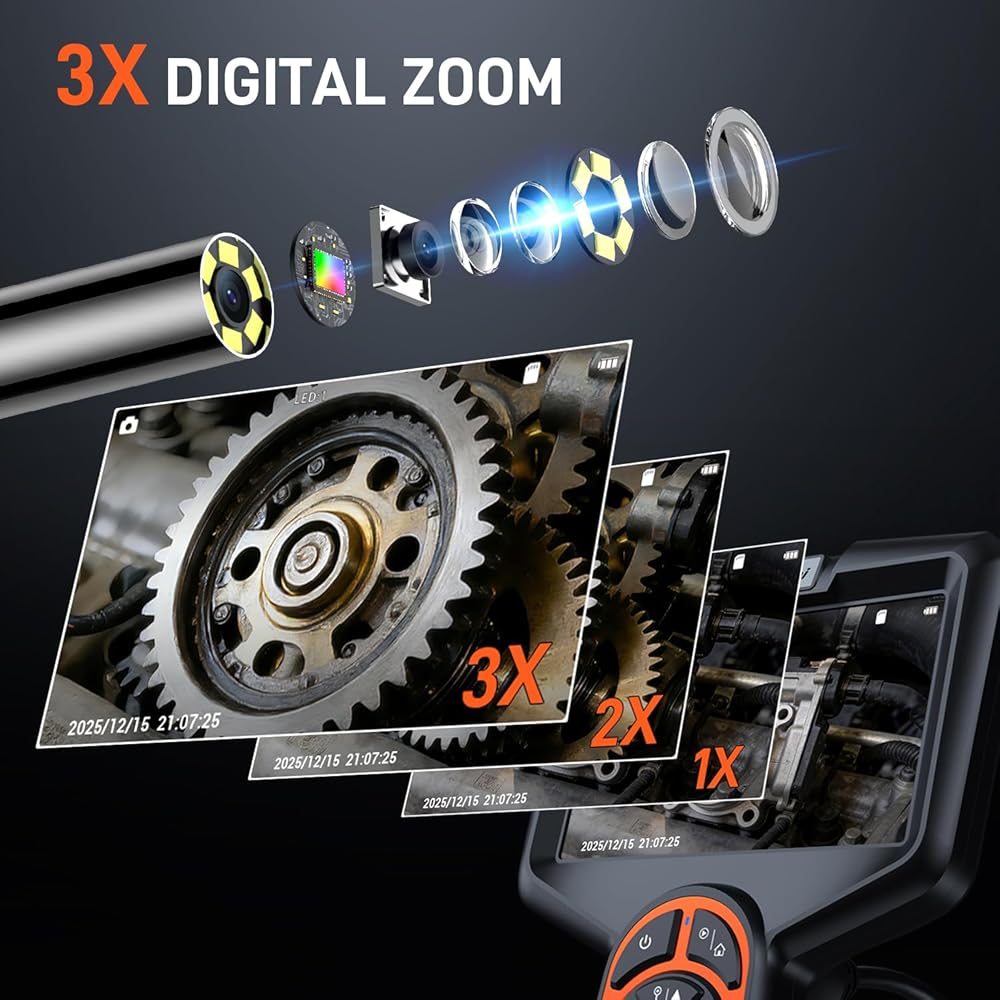 【شاشة IPS مقاس 5 بوصات لمشاهدة حية بدقة عالية】تمتع بمشاهدة واضحة وواسعة الزاوية على شاشة IPS كبيرة مقاس 5 بوصات. يعرض هذا المنظار المزود بإضاءة مدمجة صورًا واضحة بدقة 1080 بكسل عالية الدقة مباشرة على الشاشة، مما يسمح لك بالتقاط الصور ومقاطع الفيديو بنقرة واحدة فقط - مما يلغي الحاجة إلى الاتصال بهاتف ذكي والمخاطرة باتساخه. تتيح الشاشة البديهية إجراء تحليل سريع وفوري أثناء مهام الفحص الخاصة بك.