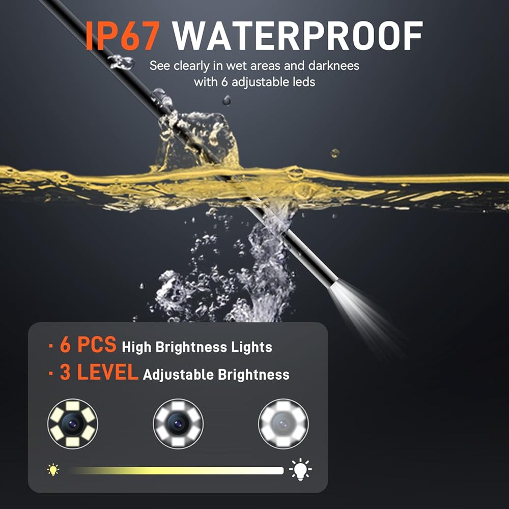 【IP67 مقاوم للماء وجاهز لمختلف المهام】تعامل مع البيئات الرطبة والمتطلبة بثقة. يمكن استخدام مسبار الكاميرا المقاوم للماء IP67 تحت الماء لمهام مثل فحص المجاري أو الأنابيب. يعد هذا المنظار أداة متعددة الاستخدامات، ومناسبة لمجموعة واسعة من التطبيقات، بدءًا من إصلاح السيارات والسباكة وحتى الصيانة المنزلية.