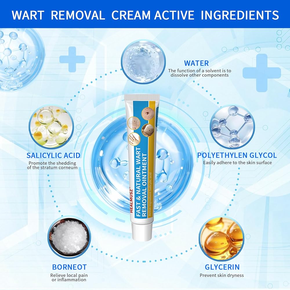 يحتوي مزيل الثآليل من هيلموس على 17% من حمض الساليسيليك لإزالة الطغوات الجلدية وكريم إزالة الثآليل الطبيعي سريع المفعول للثآليل الشائعة والثآليل الأخمصية والثآليل الأخرى في الجسم