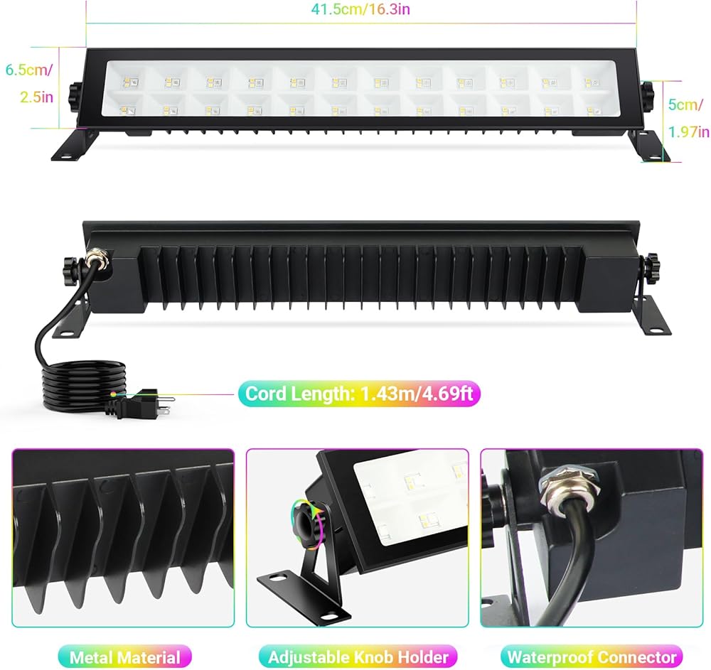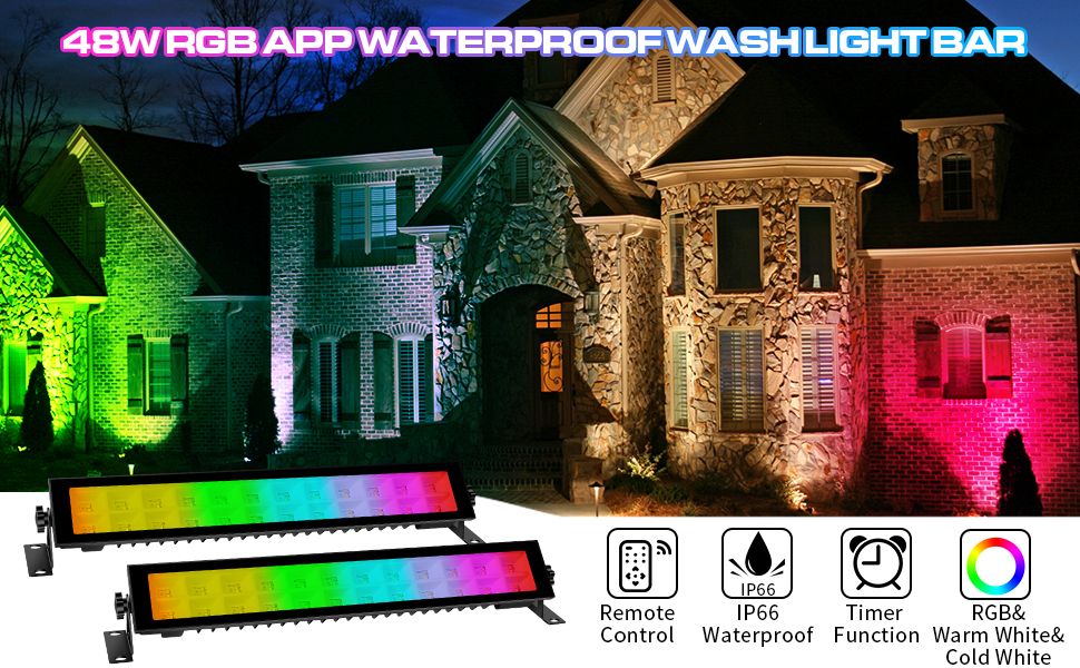 شريط إضاءة LED للغسيل في المسرح 2 حزمة: مصابيح غسيل RGBCW 16 بوصة 48 وات - التطبيق والتحكم عن بعد - مقاومة للماء IP66 - التوقيت ومزامنة الموسيقى - إضاءة للأحداث الخارجية والداخلية وحفلات غسيل الحائط والمناظر الطبيعية للحديقة