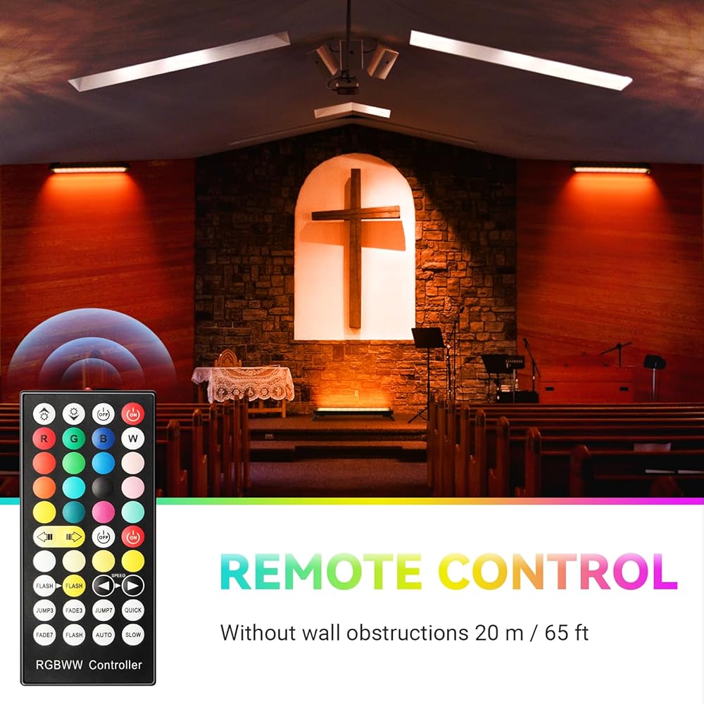 IP66 مقاوم للماء والاستخدام على نطاق واسع - مصباح غسيل المسرح LED مقاوم للماء IP66. -25 درجة مئوية -50 درجة حرارة التشغيل مما يعني أنه يمكن تركيب هذا الضوء في الهواء الطلق حتى في الأحوال الجوية السيئة (ملاحظة: لا تغمر الضوء في الماء). يضمن العمر الافتراضي الذي يزيد عن 50000 ساعة أداءً طويل الأمد. شريط الإضاءة RGBW مناسب جدًا للإضاءة الخارجية والعروض المسرحية وأعياد الميلاد والحفلات والعطلات والكرنفالات والفنون وغيرها من الأنشطة.