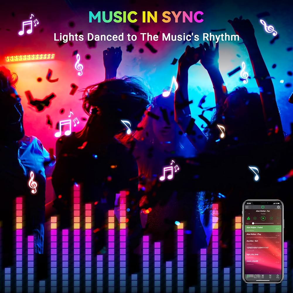 SYNC MUSIC - يمكن لقضبان الإضاءة الموجودة على الحائط تغيير الألوان وفقًا لإيقاع اللحن الموسيقي. هناك طريقتان لوضع الموسيقى: تشغيل الموسيقى في التطبيق، وهو عبارة عن ملفات موسيقى لنظام تحديد التطبيق أو الاستماع إلى الموسيقى من المحيط من خلال الميكروفون الموجود على الهاتف. حتى لو كنت لا تعرف شيئًا عن إيقاعات الإضاءة، فلا يزال بإمكانك الاستمتاع بالعيد الصوتي في أي وقت وفي أي مكان.