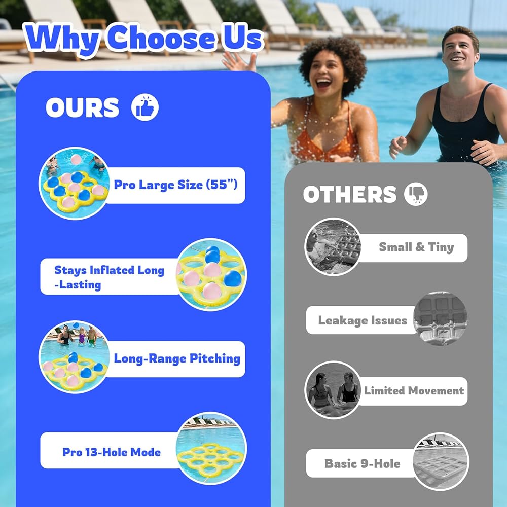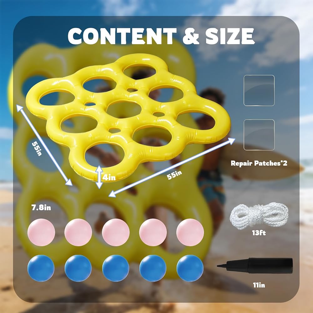 ☀️ ألعاب حمام السباحة الممتعة متعددة الأعمار: قم بإشراك اللاعبين من جميع الأعمار بلعبة تتحدى العقل والمهارات البدنية. تجمع ألعاب تيك تاك تو هذه الأجيال معًا وهي إضافة رائعة لأي مجموعة من ألعاب وألعاب البلياردو