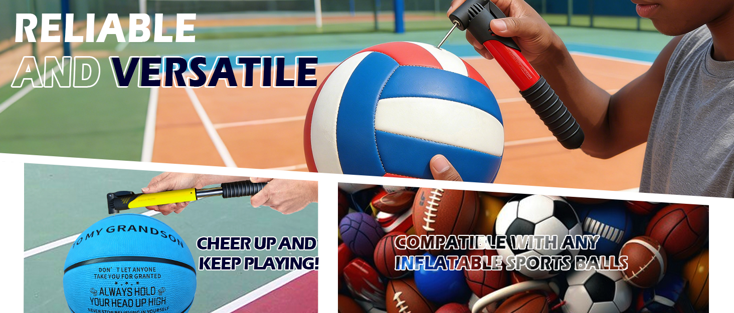 MULTIPURPOSE: The JIUERYUN small air pump is good for almost all balls. Use the hand pump as a basketball pump, soccer ball pump, volleyball pump, or football pump. Take the mini air pump anywhere!
