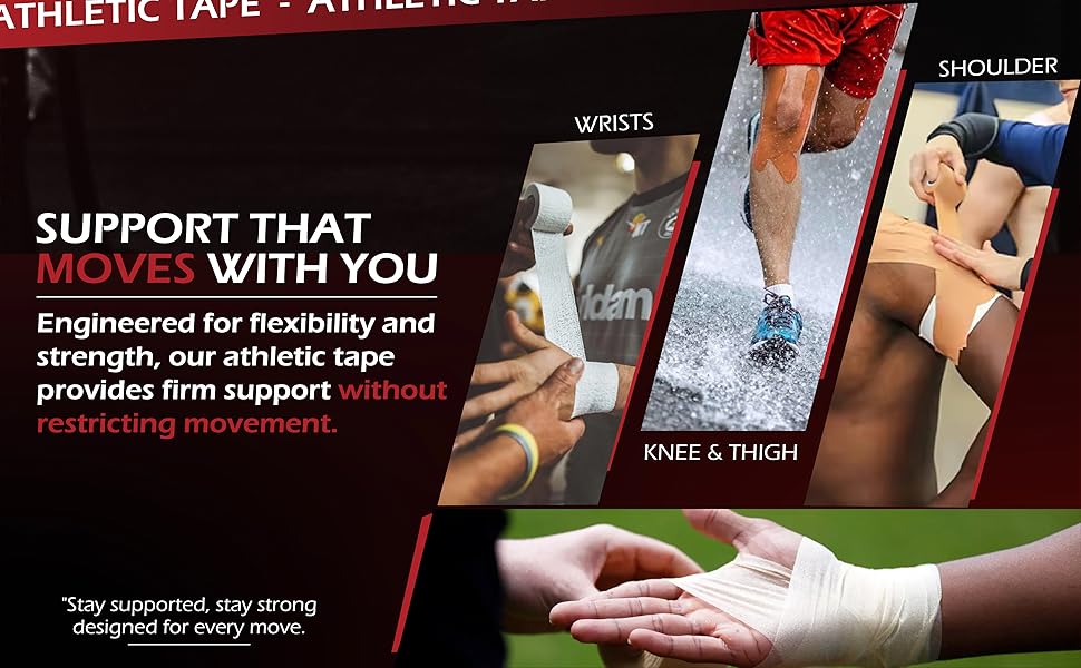 دعم قوي للتدريب المكثف، شريط رياضي عالي الأداء مصمم لتحقيق الثبات أثناء رفع الأثقال وكرة القدم والتنس والجري وجلسات الجيم اليومية. يوفر دعمًا آمنًا للمعصمين والأصابع واليدين والكاحلين حتى يتمكن الرياضيون من التدريب بثقة.