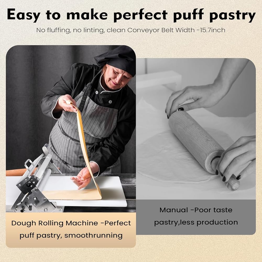 【Boundless Baking Potential】More than just a kitchen tool, the YGHGAUH Dough Sheeter is your gateway to culinary exploration, enabling you to craft an endless array of baked delights including croissants, danish, puff pastries, cookie dough, and even specialized confectionery techniques. Embrace the joy of handmade perfection, transforming simple ingredients into masterpieces that tell a story of passion, precision, and unbridled creativity