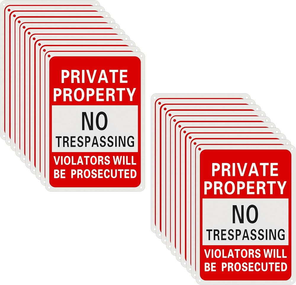 20 حزمة من علامات الملكية الخاصة التي لا تسمح بالتعدي على ممتلكات الغير، علامة ألومنيوم بحبر الأشعة فوق البنفسجية مقاومة للصدأ مقاس 10x7 بوصة، علامات تحذير مقاومة للطقس/متينة للمنزل والحديقة والفناء التجاري