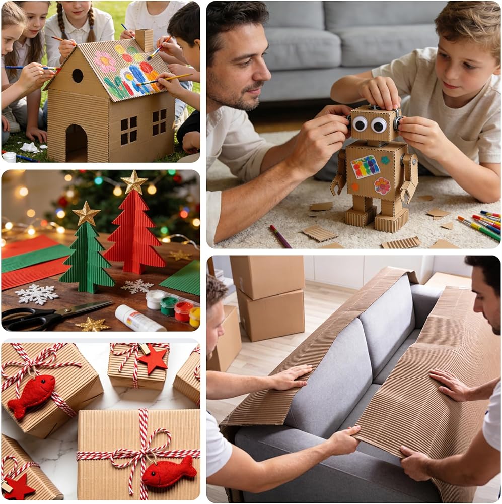 【اختيار مثالي للتغليف والشحن】 تعتبر ورقة الورق المقوى هذه مثالية للتغليف الاحترافي والشحن وملء المستودعات لحماية العناصر الهشة. كما أنه مساعد رائع للتخزين المنزلي وحماية الحركة. يمكن للكرتون المموج أن يحمي العناصر بشكل فعال من الصدمات والخدوش أثناء النقل، مما يسهل عليك سواء كنت ترسل توصيلات سريعة أو تنظم أشياء متنوعة.