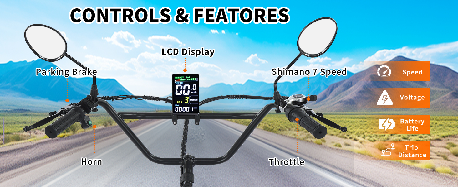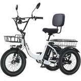 【3 Riding Modes & Shimano 7-Speed】Our 3-wheel electric bicycle can be used as an e-trike, an assisted tricycle, and a normal tricycle. With the LCD button, Shimano 7-speed gears, you can easily switch the electric assist level or tackle rides with human power alone. This system is perfect for fitness-focused riders, providing smooth and effortless pedaling even without any electric output. With two large detachable cargo baskets, it can meet your daily cycling and short trips.