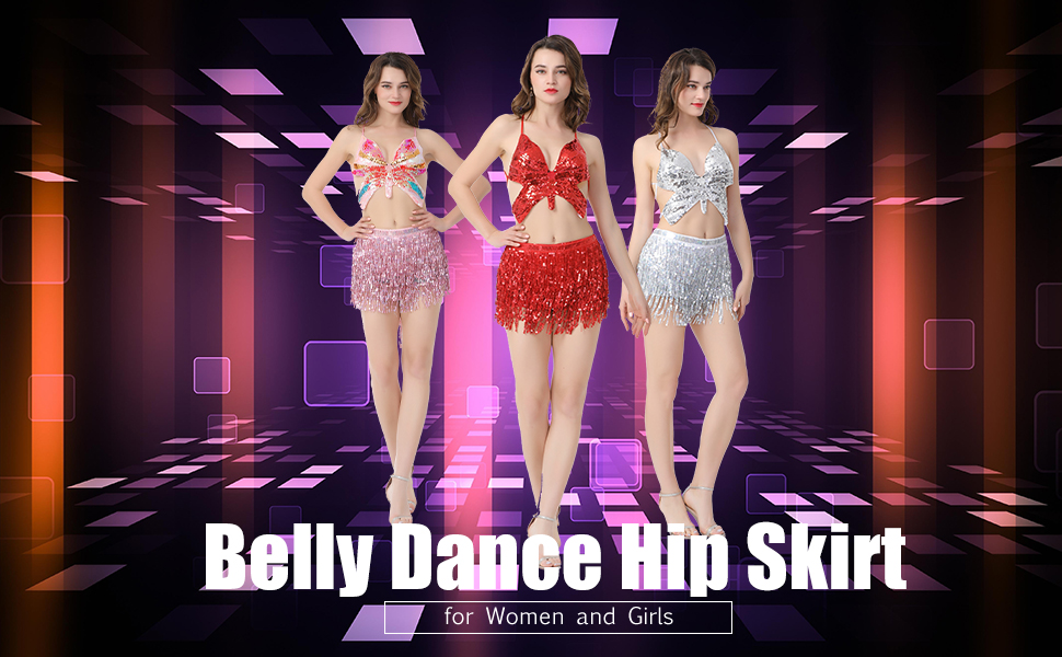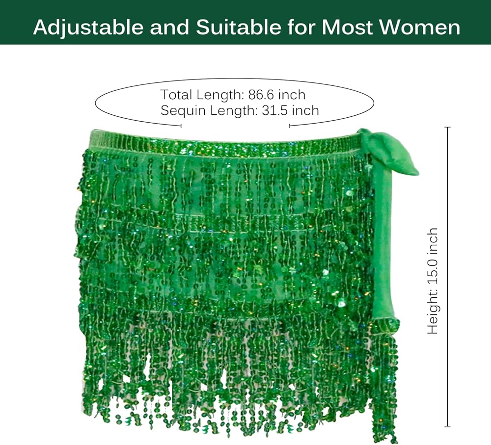 - تنورة كاملة: لفافة الجسم من جميع النواحي، لتجنب التعرض للوعي، شرابة من الترتر والشيفون، خفيفة الوزن ومريحة في الارتداء