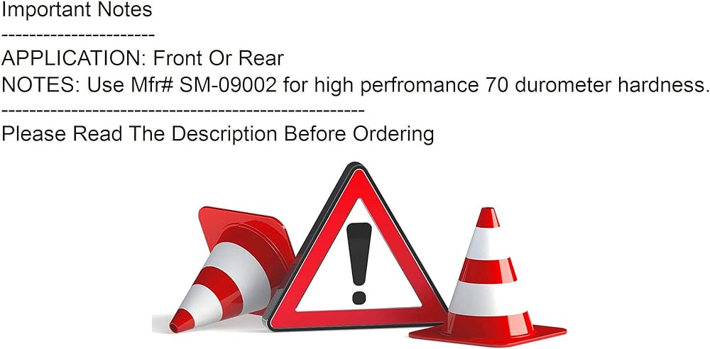 • APPLICATION: Front Or Rear ^ NOTES: Use Mfr# SM-09002 for high perfromance 70 durometer hardness.