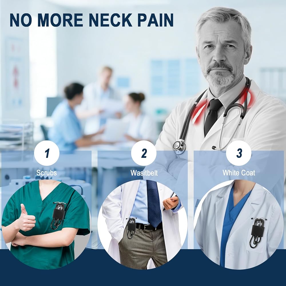 Waterproof, lightweight, and easy to clip, it reduces neck strain and keeps your stethoscope accessible—ideal for busy healthcare professionals.