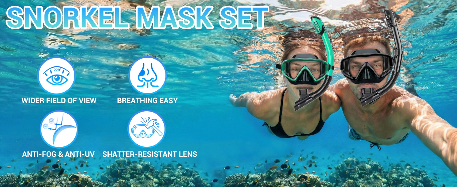 snorkeling gear comes with a mask, a dry-top snorkle, earplugs and a storage bag. It is an excellent choice for your snorkeling trips. You can purchase our snorkel mask sets for both adults and children with complete confidence. If the kit does not suit you or meet your liking, we offer return and exchange