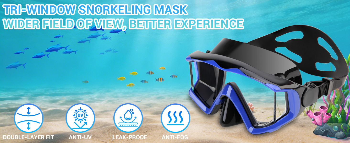 Comfortable and Seal : The skirt of the mask is made of soft food-grade liquid silicone, which fits the face better and will not cause pressure on the face. The double-layer Seal design of the skirt can prevent water leakage