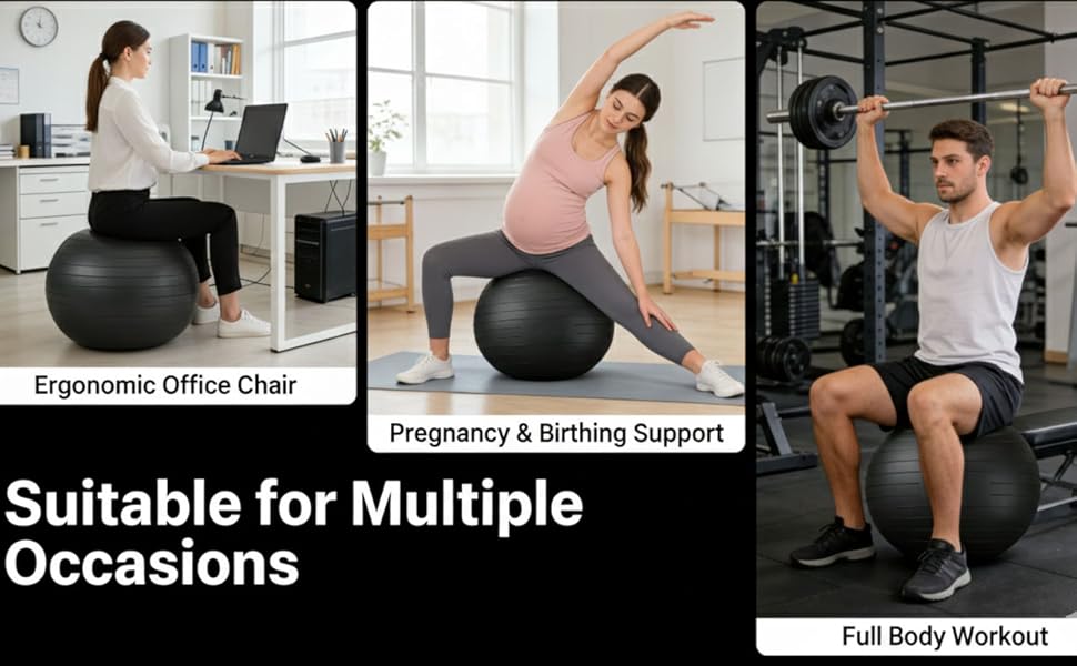 استخدام متعدد الأغراض: مثالي لمجموعة متنوعة من الأنشطة - تقوية القلب، وتدريب التوازن، والرياضة، وتمارين ما قبل الولادة، أو حتى كبديل مريح للكرسي لتحسين الوضع وتخفيف آلام الظهر.