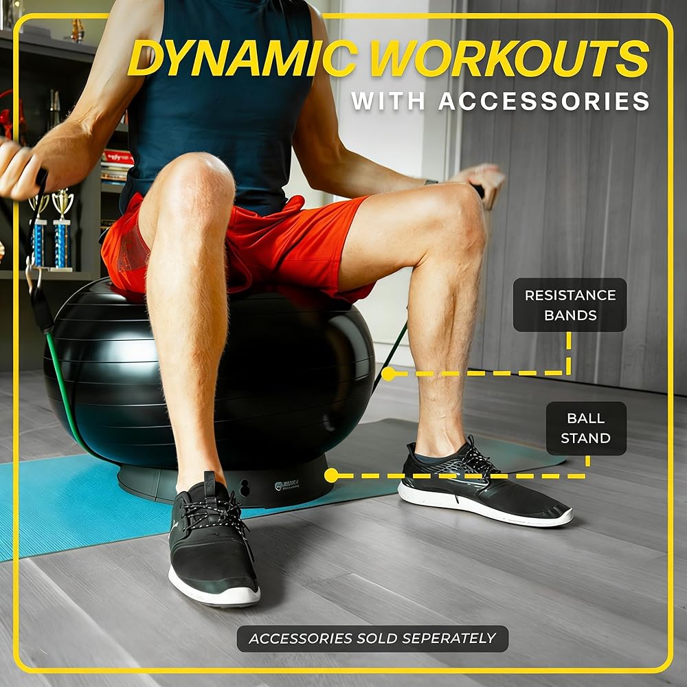 مقاومة للانفجار وسعة الوزن العالية: مصنوعة من بولي كلوريد الفينيل المتين عالي الجودة، كرة اليوجا هذه مقاس 24 بوصة - 26 بوصة (65 سم) تدعم ما يصل إلى 330 رطلًا دون انفجار. مُصمم بآلية إطلاق الهواء البطيئة لمزيد من الأمان - مثالي للتمرينات المكثفة أو الحمل أو الرياضات البدنية