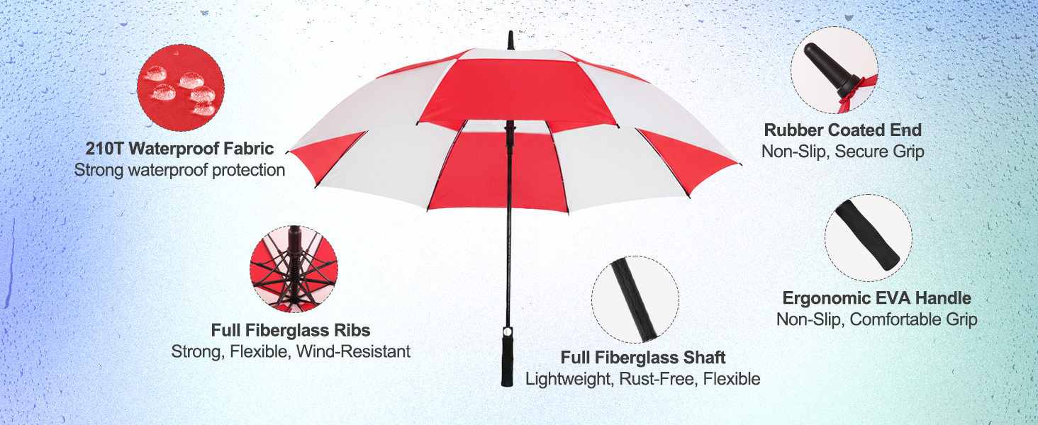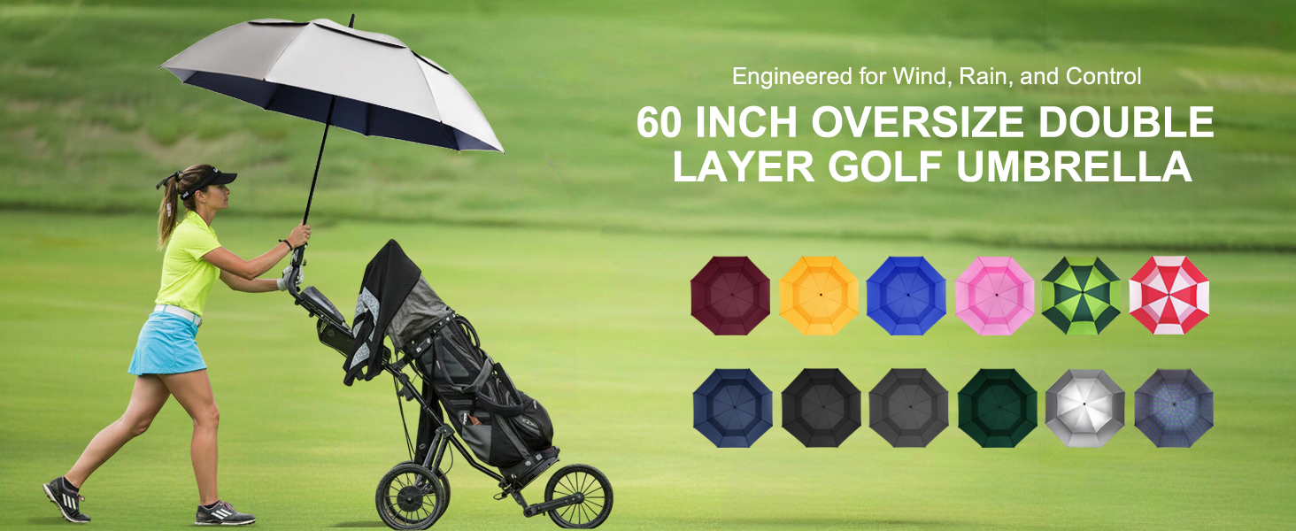مظلة قوسية كبيرة الحجم مقاس 62 بوصة - توفر المظلة القوسية الواسعة مقاس 62 بوصة (≈135 سم) تغطية لعدد 1-3 أشخاص، وهي مثالية للجولف أو نزهات العمل أو السفر العائلي للبقاء جافًا ومريحًا معًا.