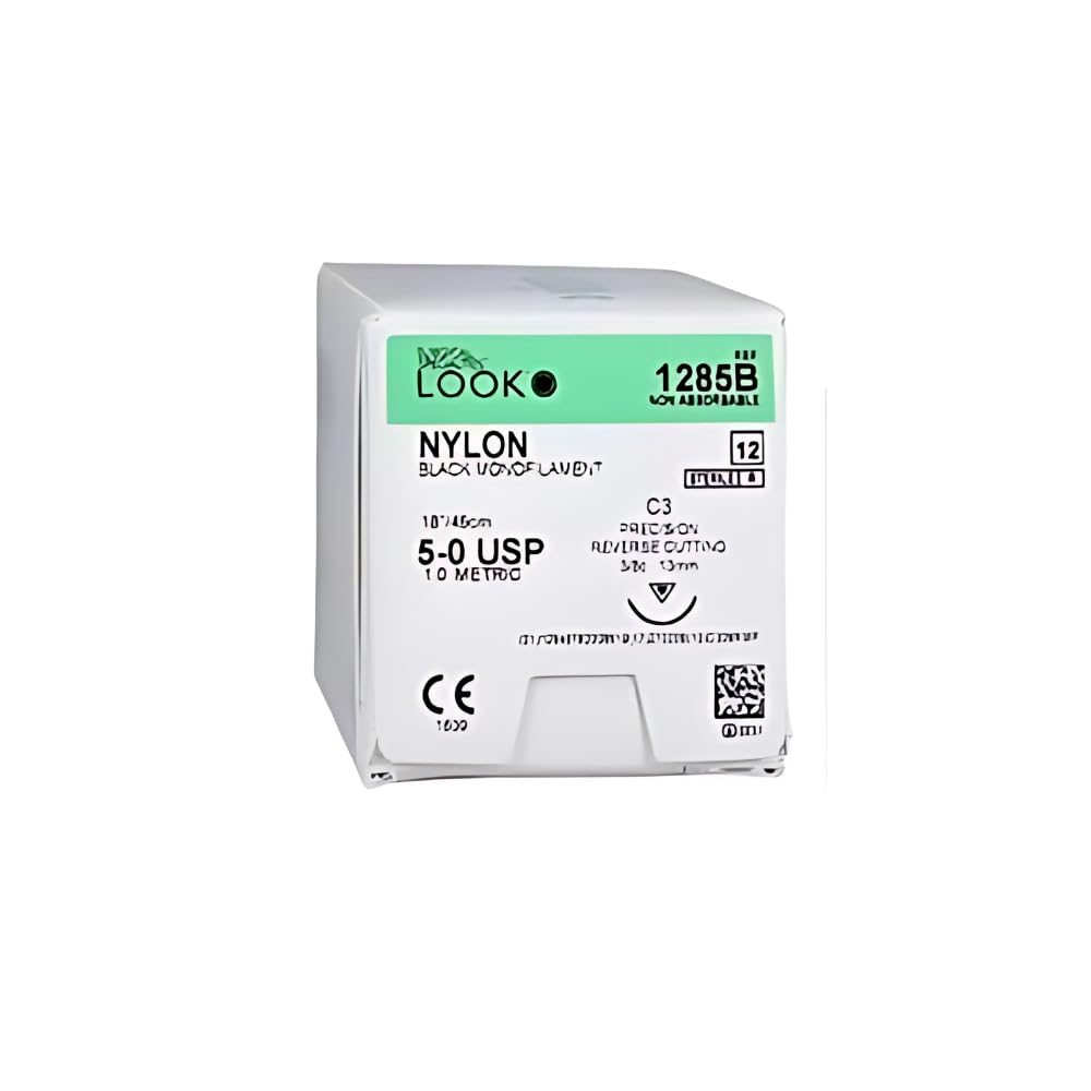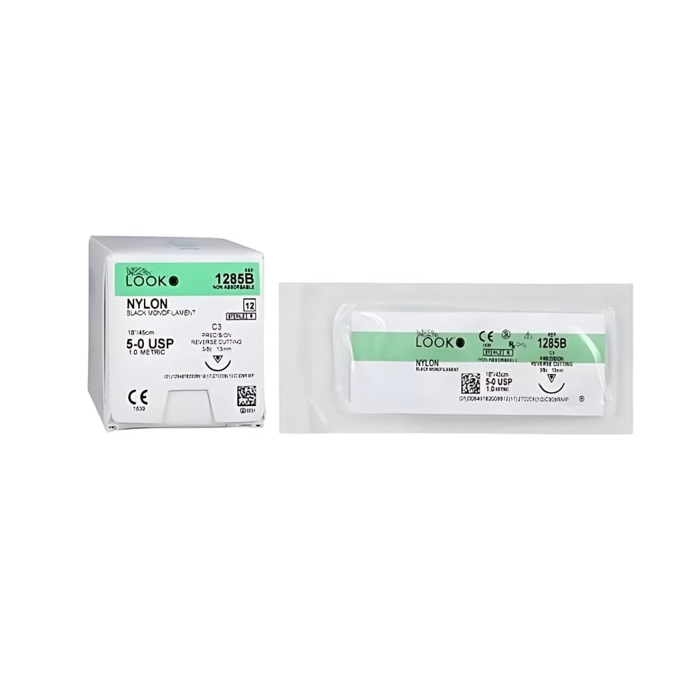 Look X1285B خيوط نايلون سوداء 5-0 18 C3 3/8 دقة الدائرة 13 مم 12/Pk
