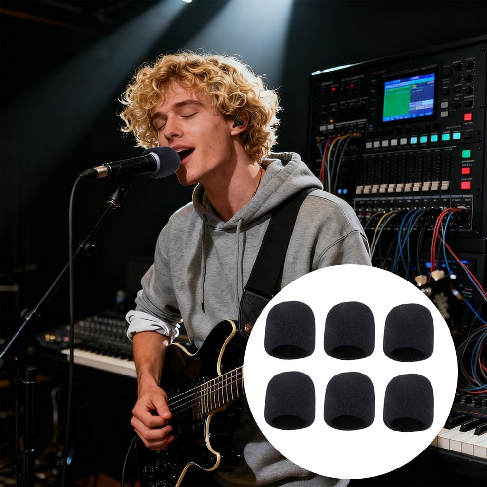 Microphone Covers Foam, 6 Pcs Soft Foam Mic Covers, Microphone Windscreen Pop Filter Cover Protection Noise-cancellation Windsock Cover Microphones Accessories for Most Standard Handheld