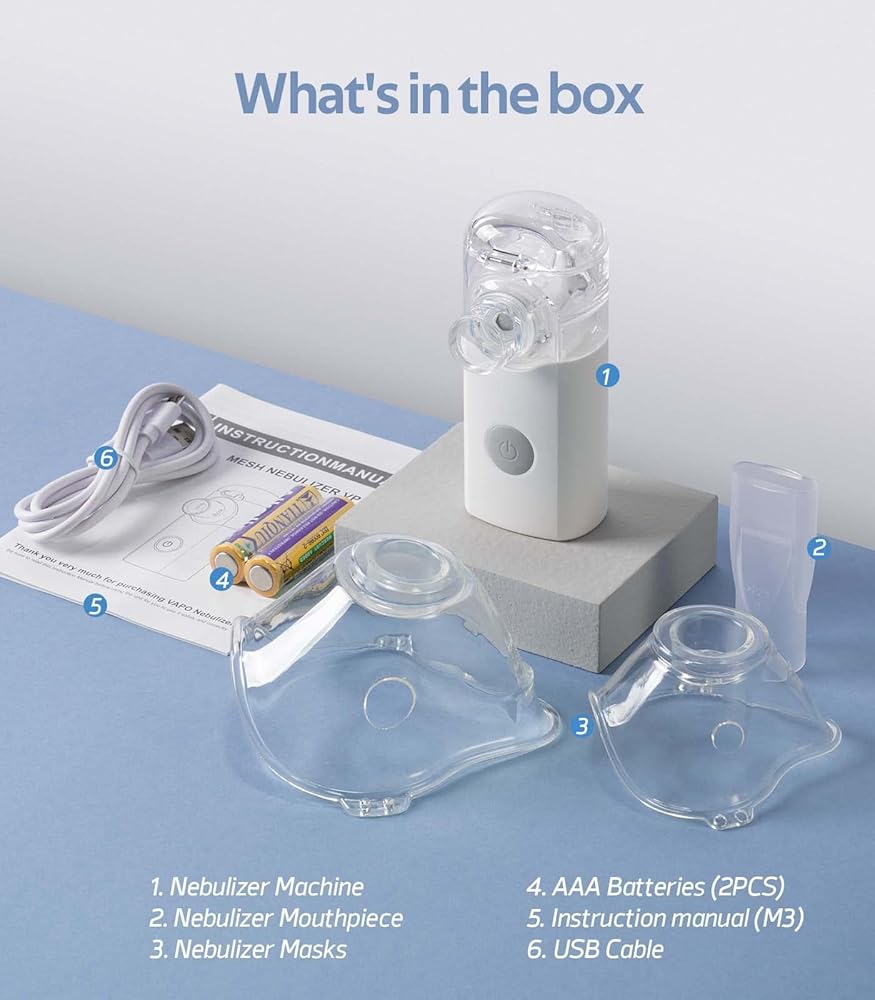 【Full Accessory Kit】 Small and exquisite, this handheld unit includes two safety masks of different sizes to fit various needs, a nozzle mouthpiece, a USB-C charging cable, and clear instructions.