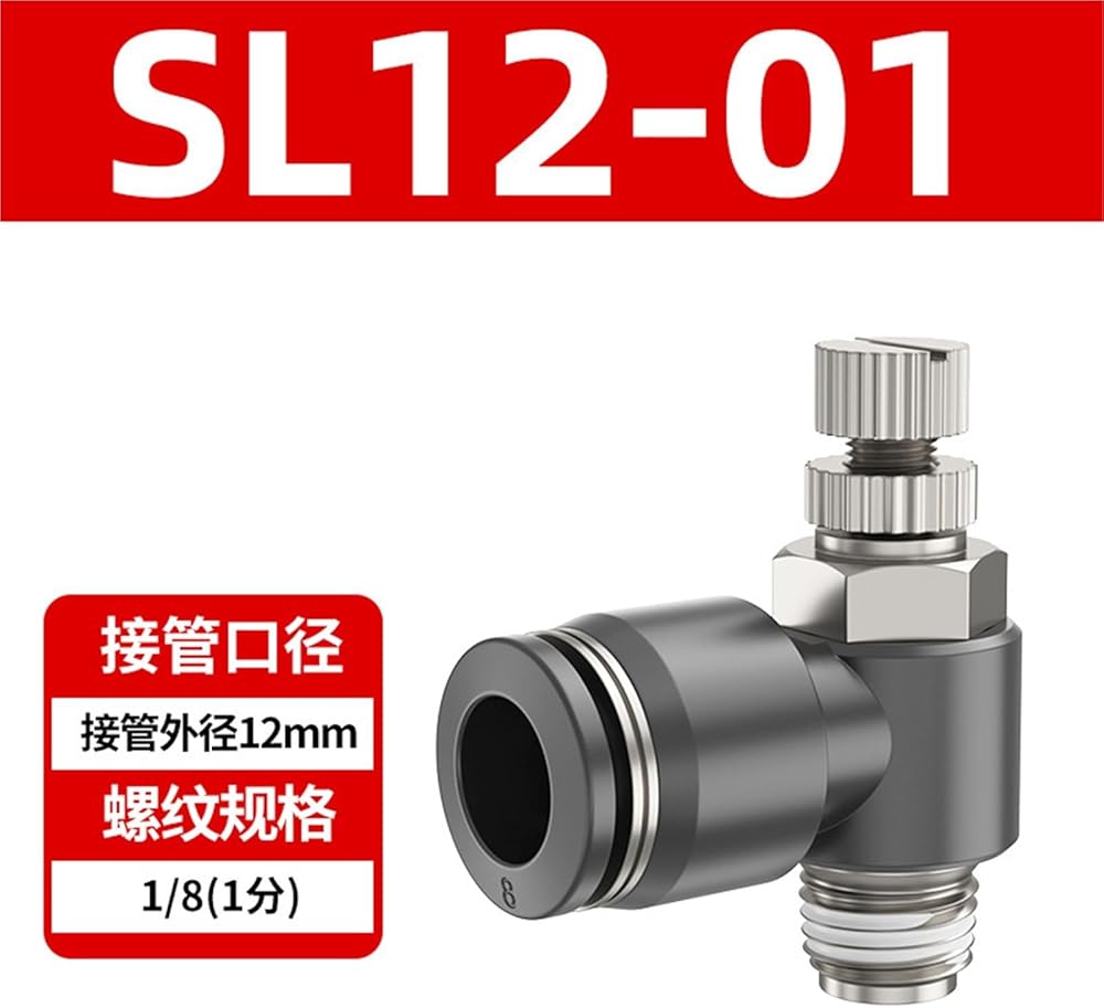 القصبة الهوائية موصل سريع التحكم في السرعة التبديل تنظيم صمام خنق هوائي قابل للتعديل اسطوانة SL6/8/01/01/M510 1 قطعة(黑色SL12-01(高端))