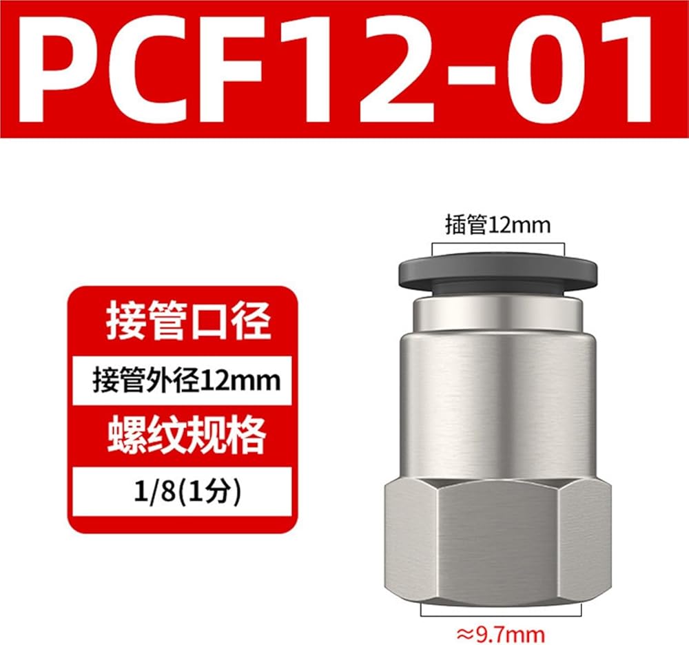 هوائي القصبة الهوائية موصل سريع PCF6-01/8-02/10-03 إدراج الخيط الداخلي مباشرة من خلال الأسود والأبيض 1 قطعة(黑色PCF12-01(高端))